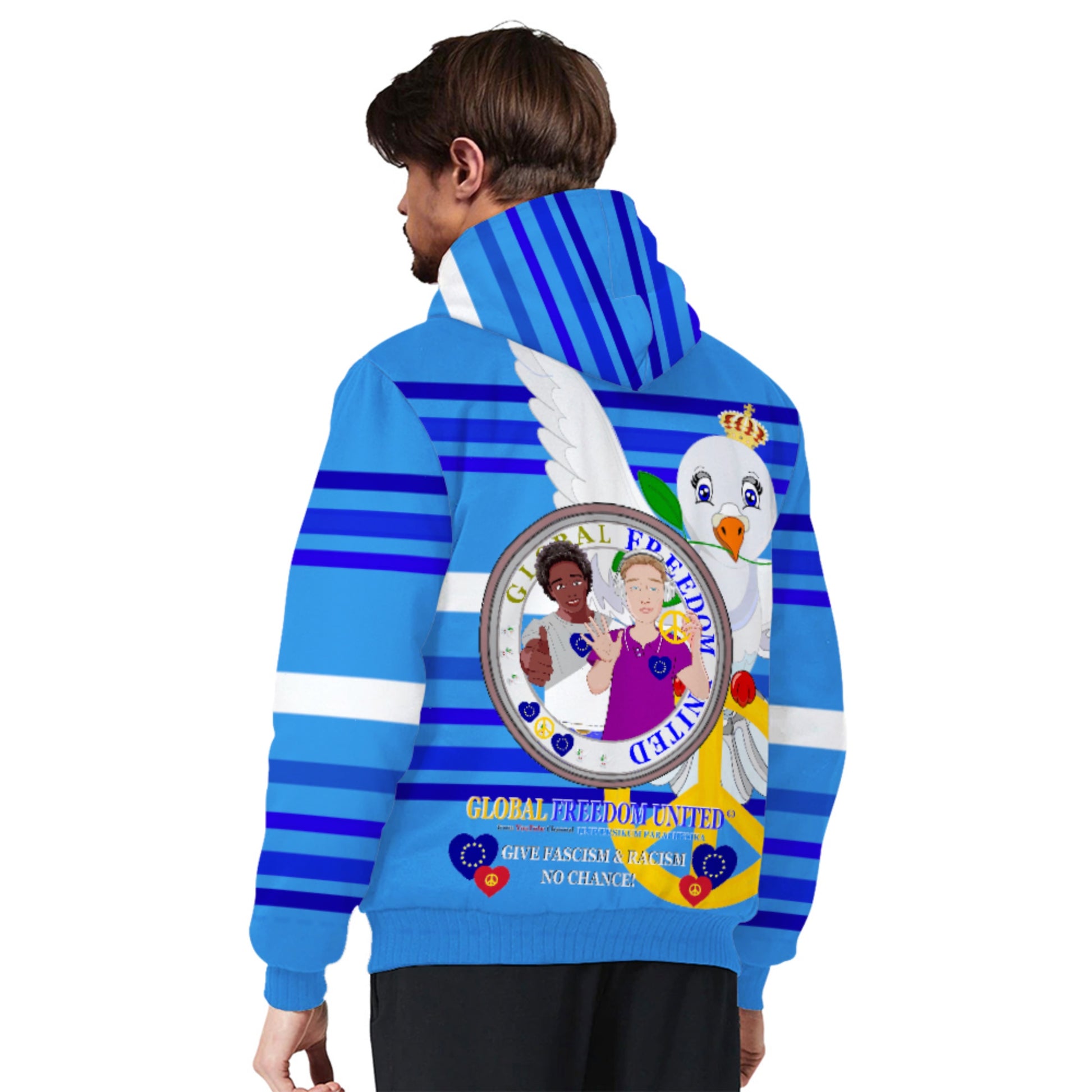 Plush Hoodie GLOBAL FREEDOM UNITED© Men Anti Racism & Fascism Deep Blue