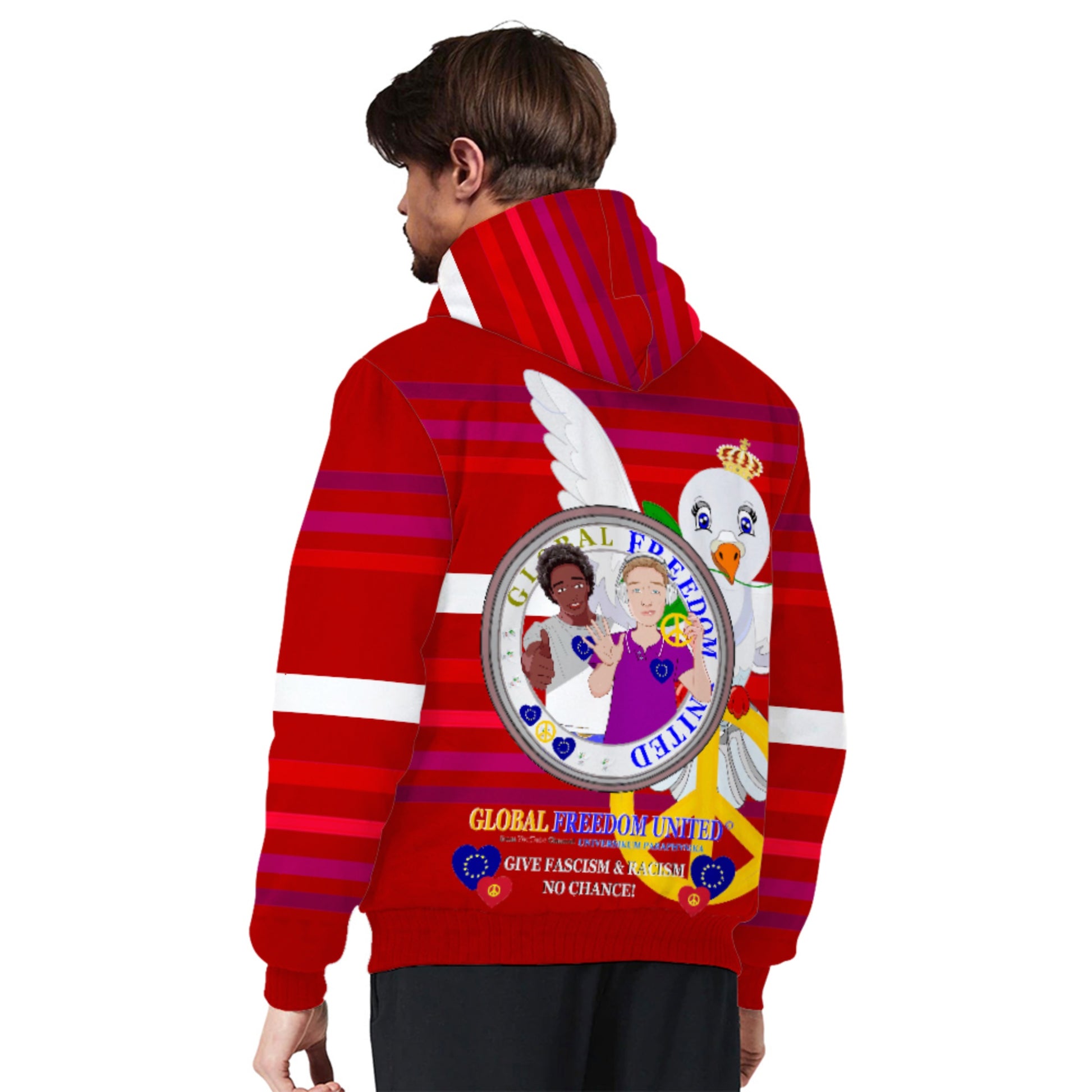 Plush Hoodie GLOBAL FREEDOM UNITED© Men Anti Racism & Fascism Red