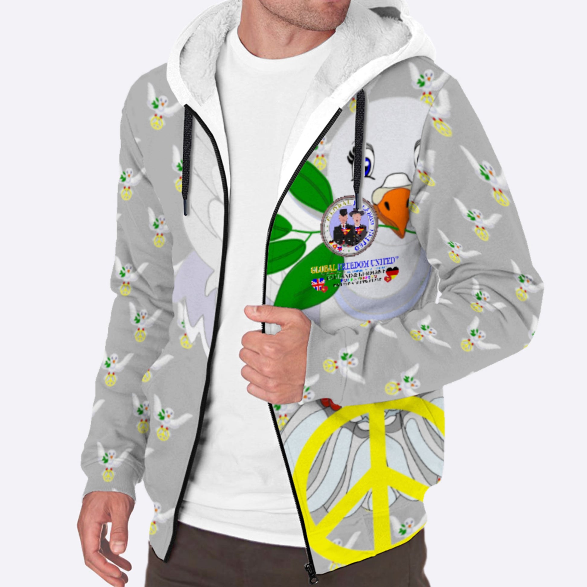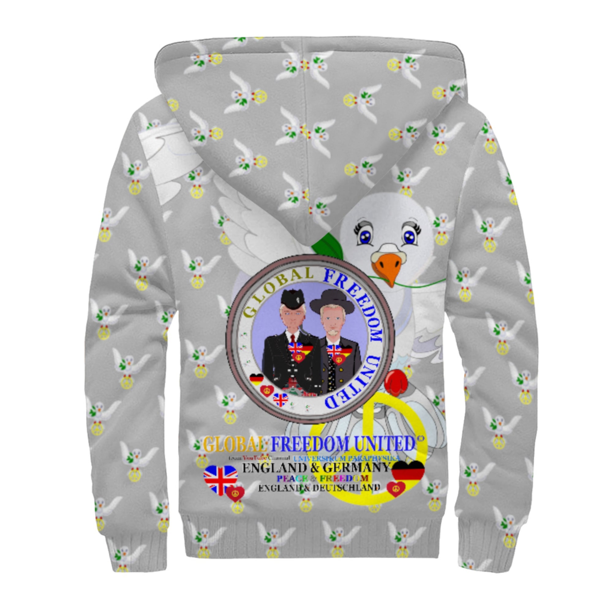 Plush Hoodie GLOBAL FREEDOM UNITED© Men England & Germany Grey