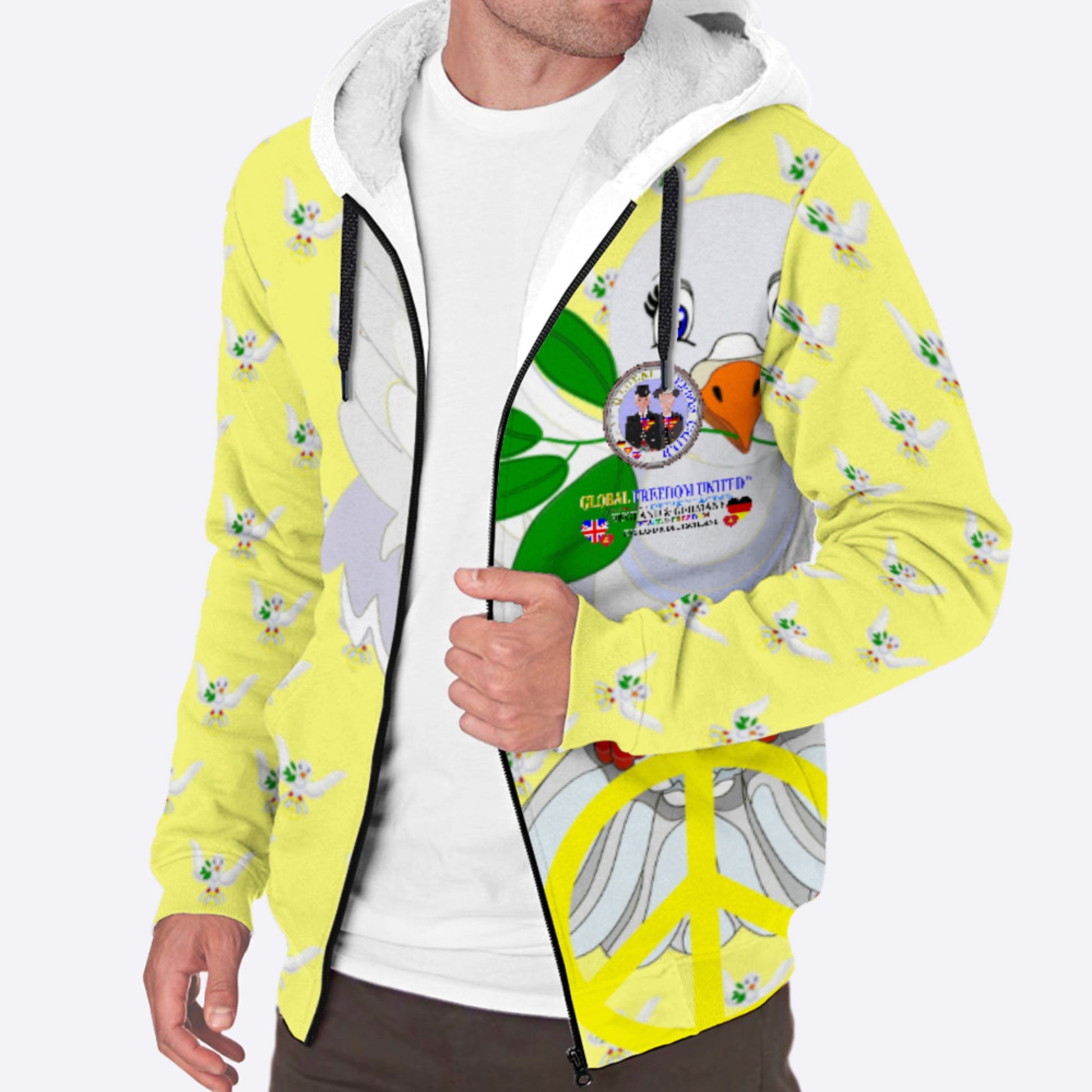 Plush Hoodie GLOBAL FREEDOM UNITED© Men England & Germany Yellow