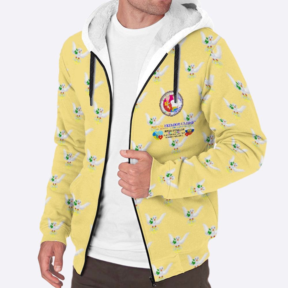 Plush Hoodie GLOBAL FREEDOM UNITED© Men Ukraina & Russia Yellow
