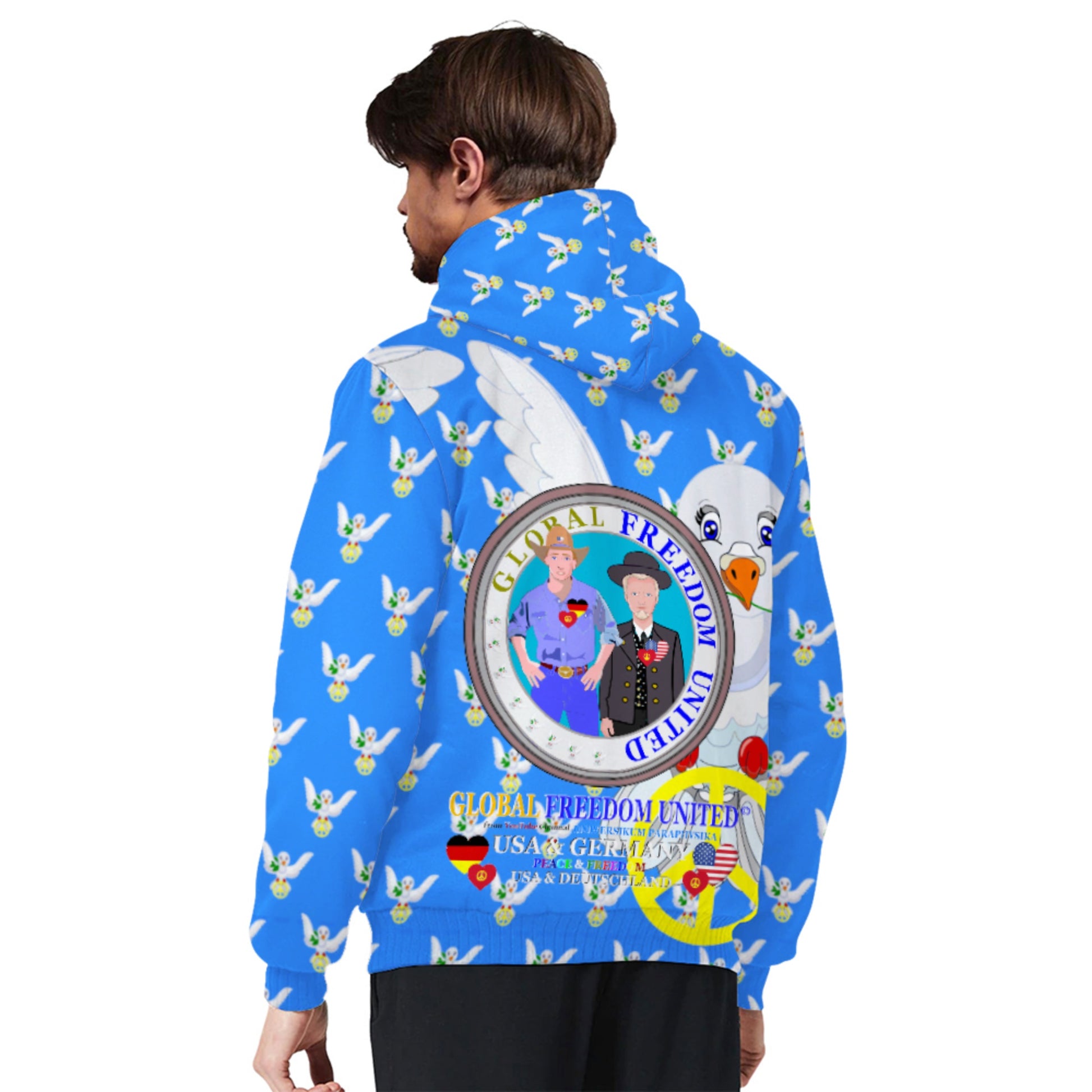 Plush Hoodie GLOBAL FREEDOM UNITED© Men USA & Germany Blue