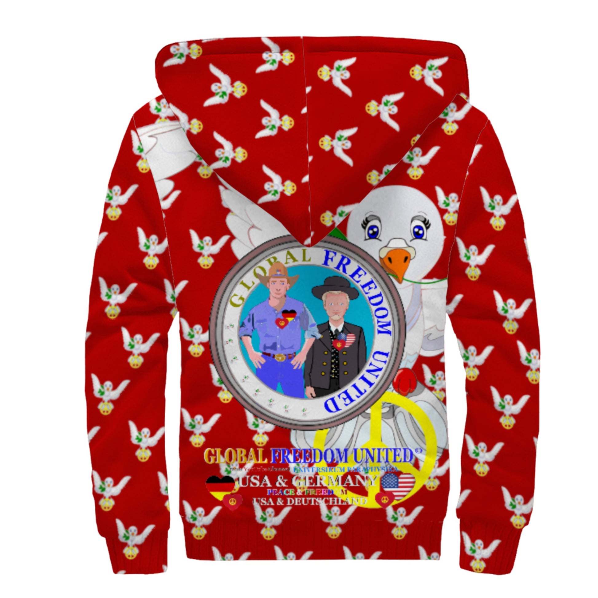 Plush Hoodie GLOBAL FREEDOM UNITED© Men USA & Germany Red
