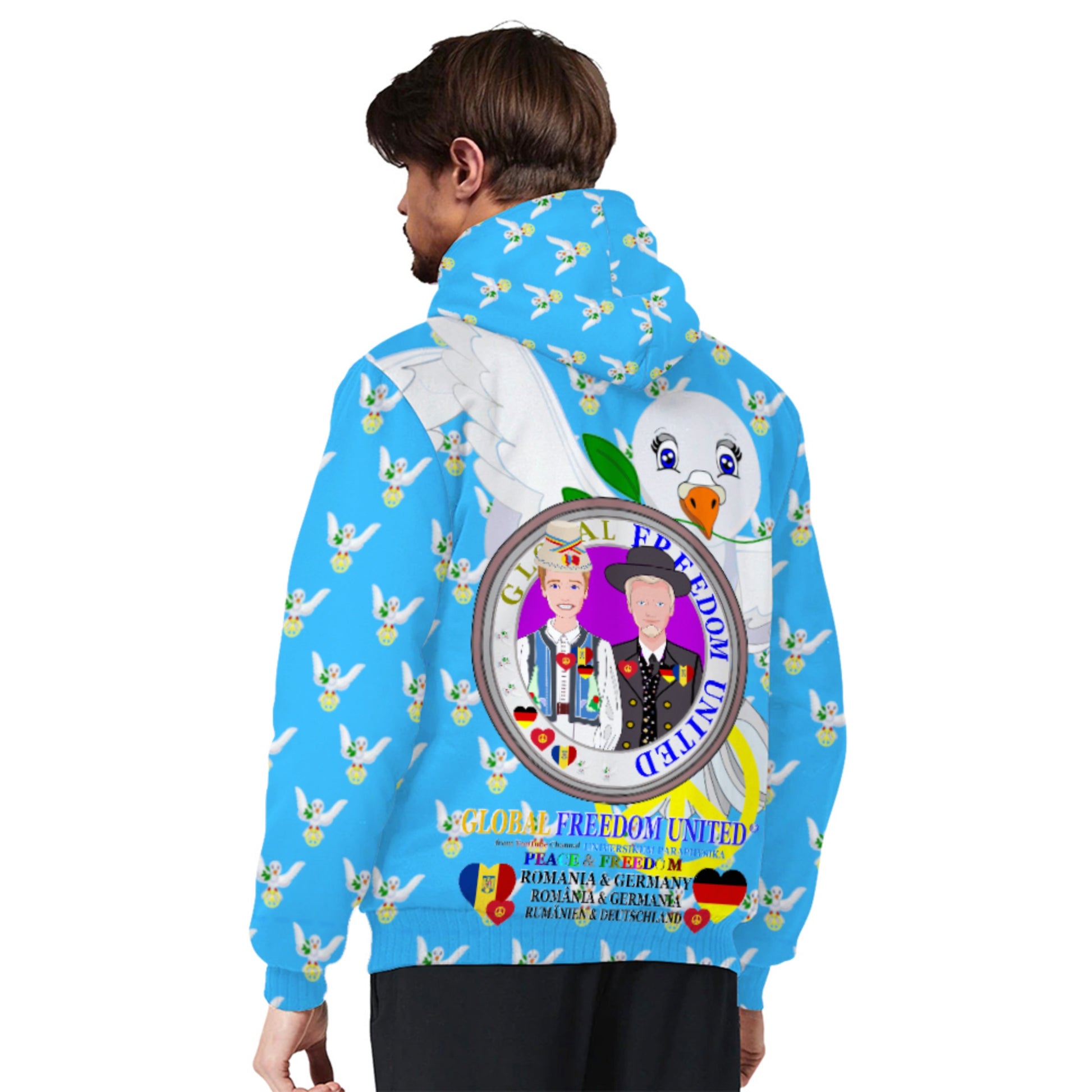 Plush Hoodie GLOBAL FREEDOM UNITED© Men Romania & Germany Blue