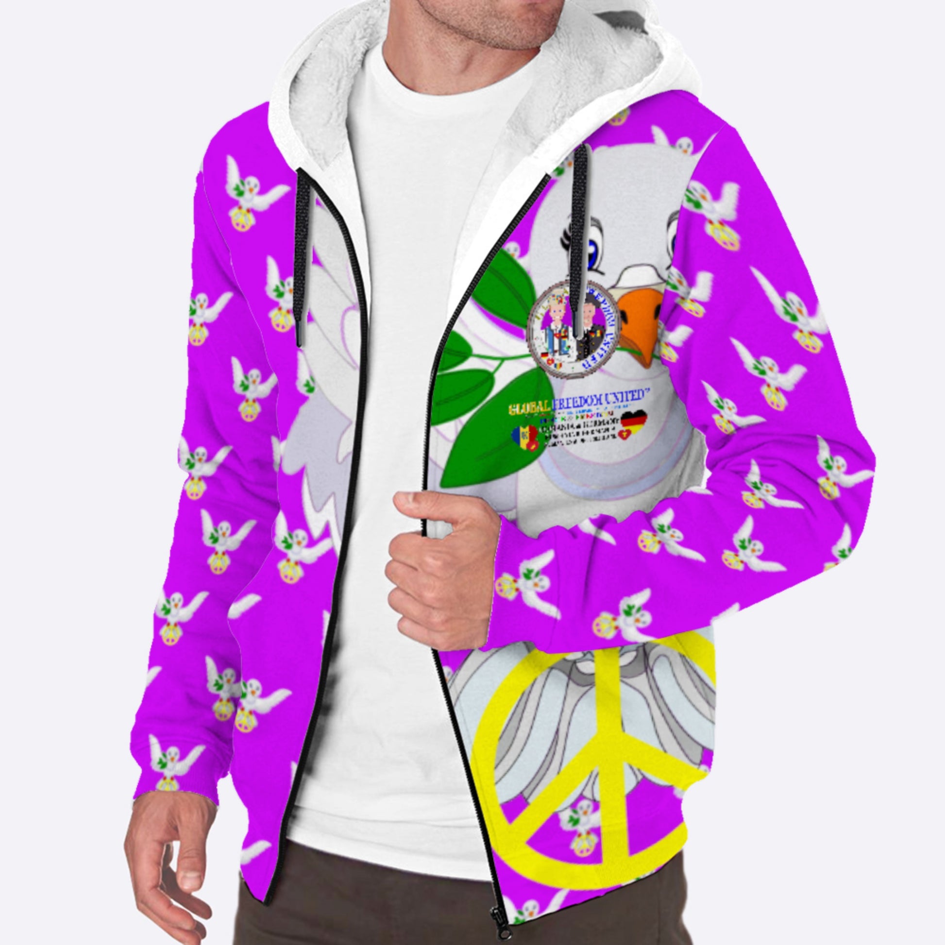 Plush Hoodie GLOBAL FREEDOM UNITED© Men Romania & Germany Lilac