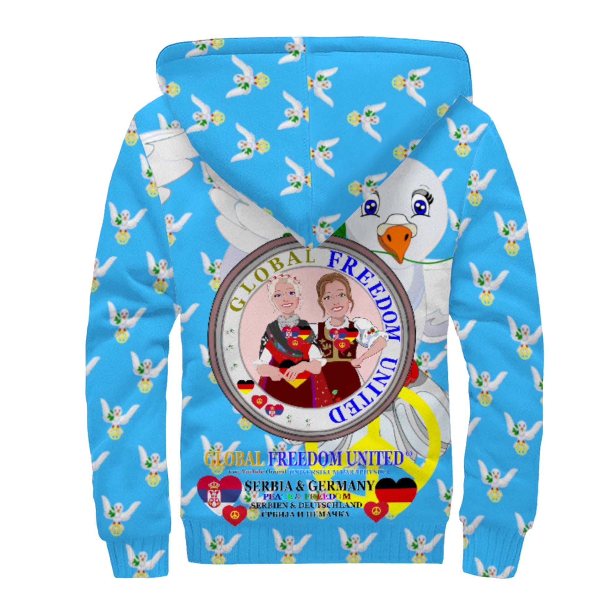 Plush Hoodie GLOBAL FREEDOM UNITED© Women Serbia & Germany V1 Blue