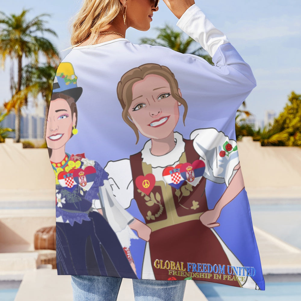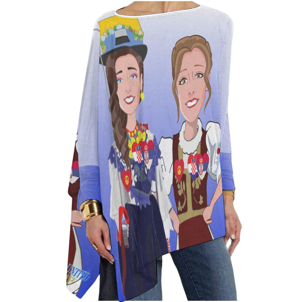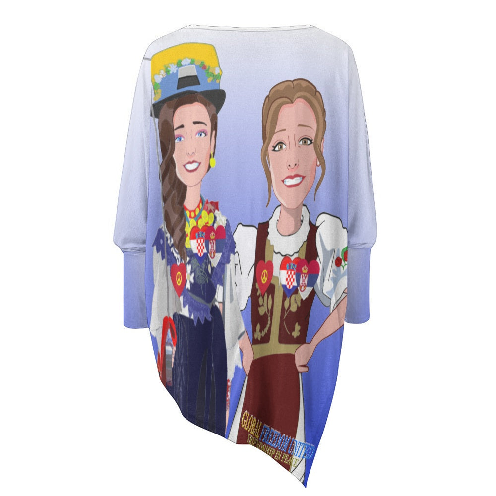 Pullover Long Sleeve T-shirt GLOBAL FREEDOM UNITED© Women Croatia & Serbia Blue