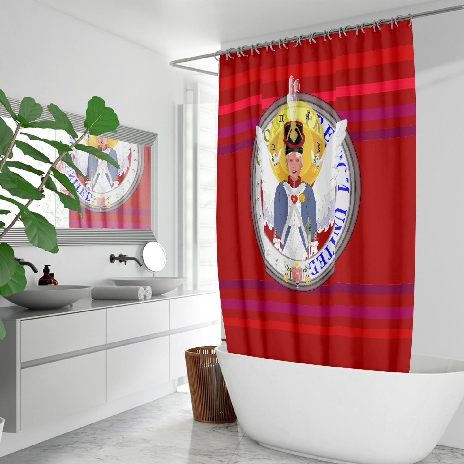 Quick-drying Shower Curtain GLOBAL FREEDOM UNITED© Archangel Michael Version 3 Red