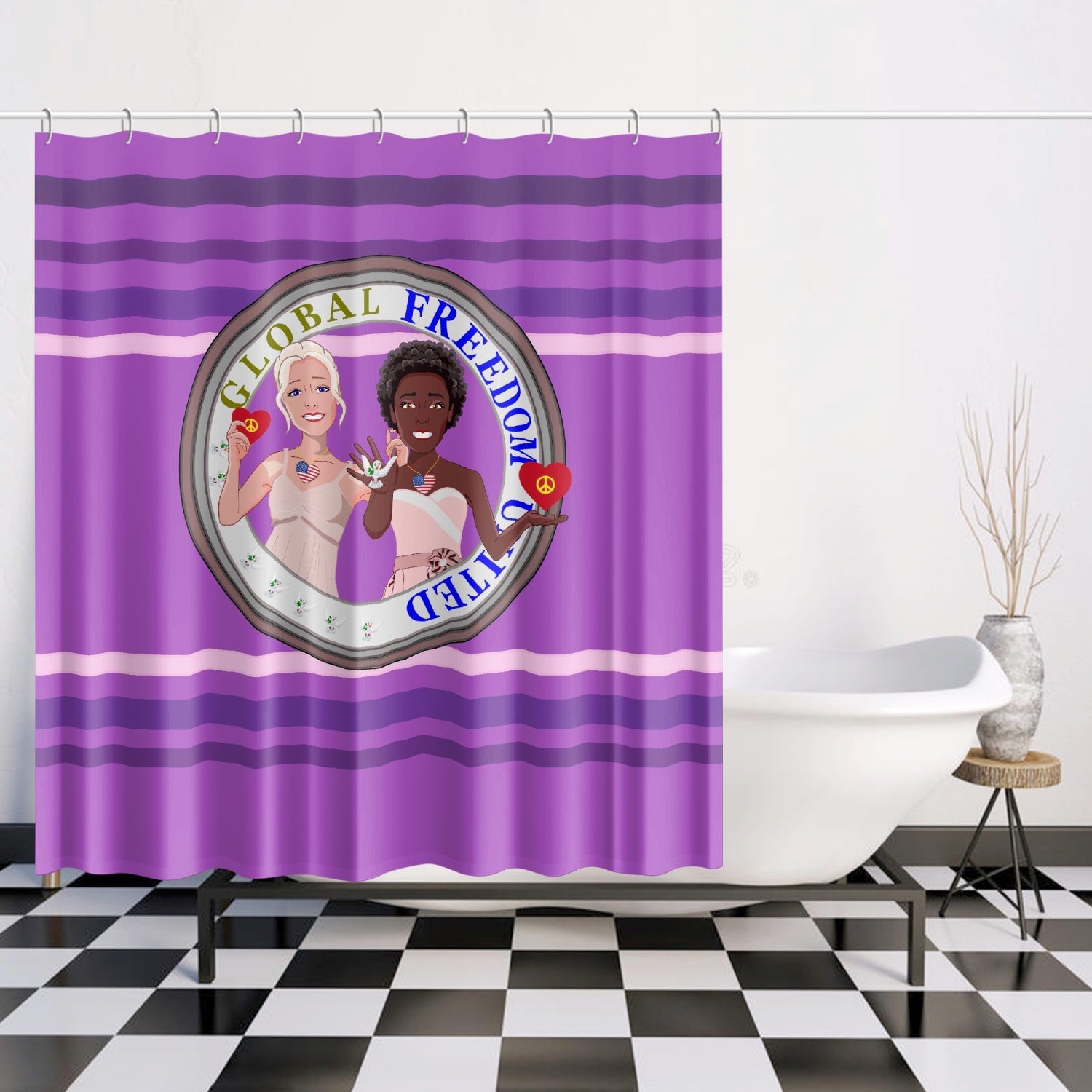 Quick-drying Shower Curtain GLOBAL FREEDOM UNITED© Men Anti Fascism & Racism USA Lilac
