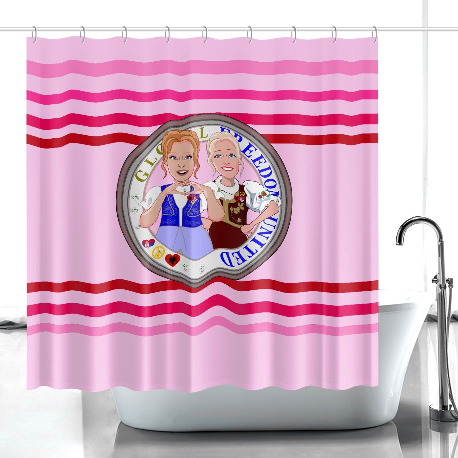 Quick-drying Shower Curtain GLOBAL FREEDOM UNITED© Women Albania & Serbia Pink
