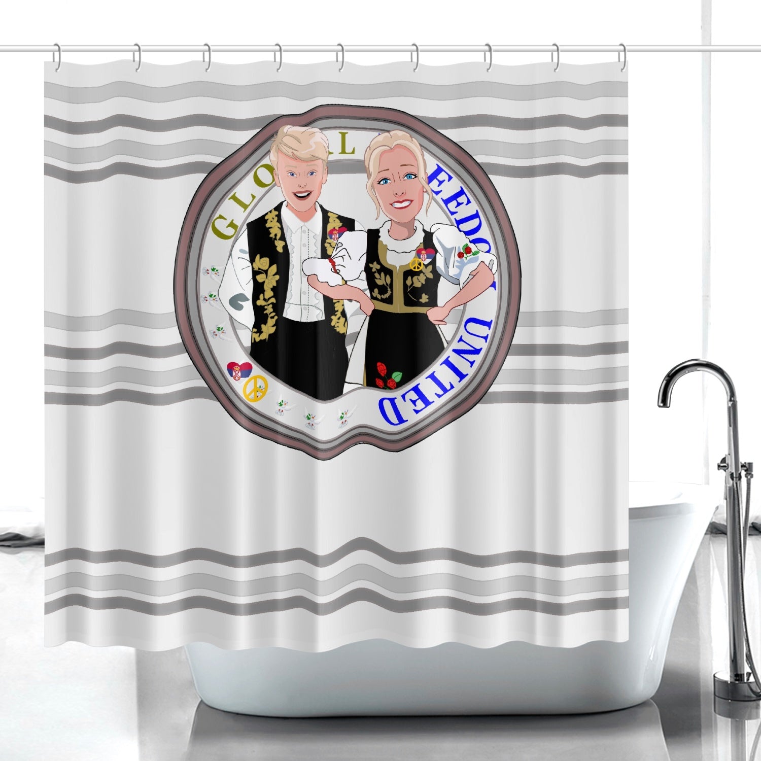 Quick-drying Shower Curtain GLOBAL FREEDOM UNITED COUPLE EDITION SERBIA GREY