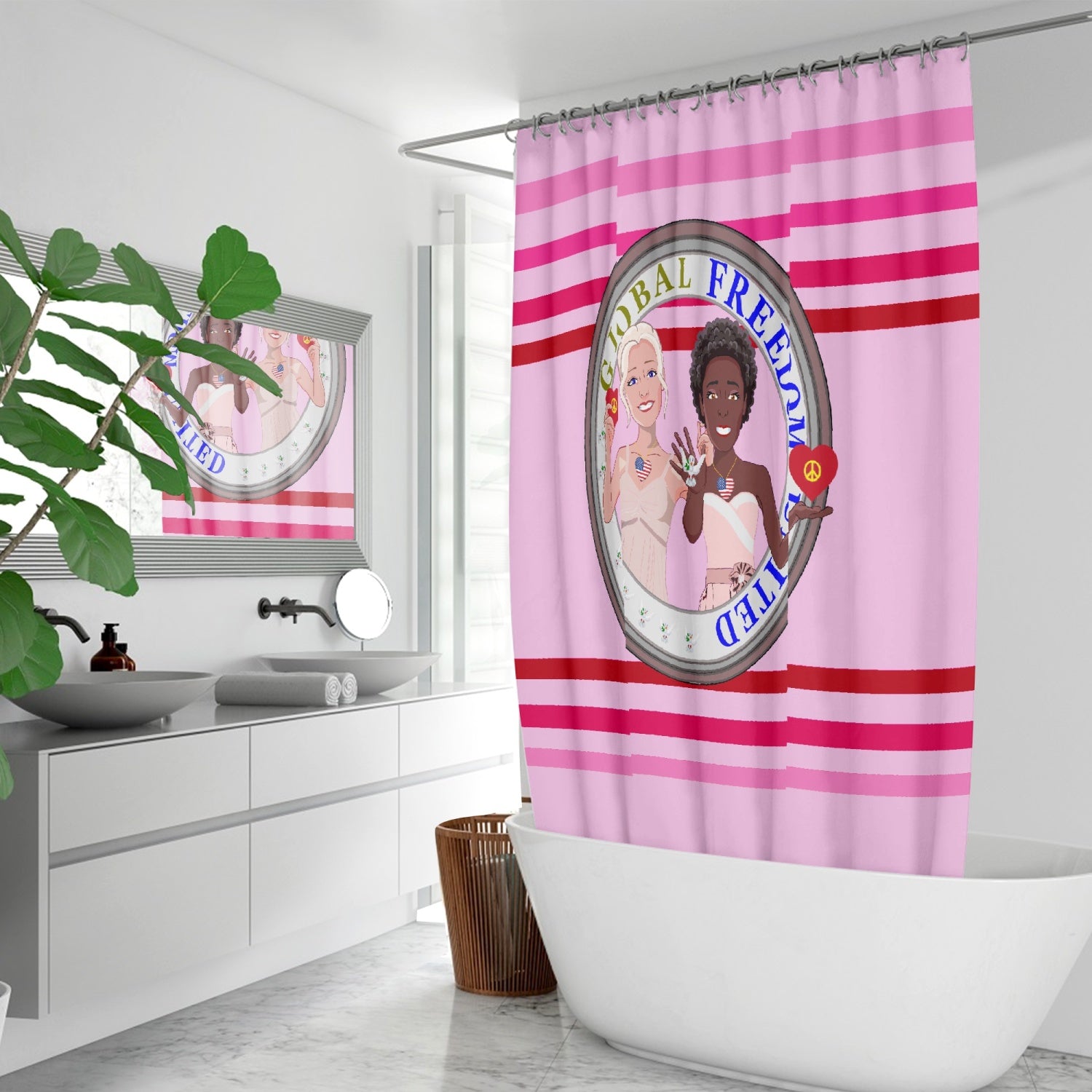 Quick-drying Shower Curtain Quick-drying Shower Curtain GLOBAL FREEDOM UNITED© Men Anti Fascism & Racism USA Pink