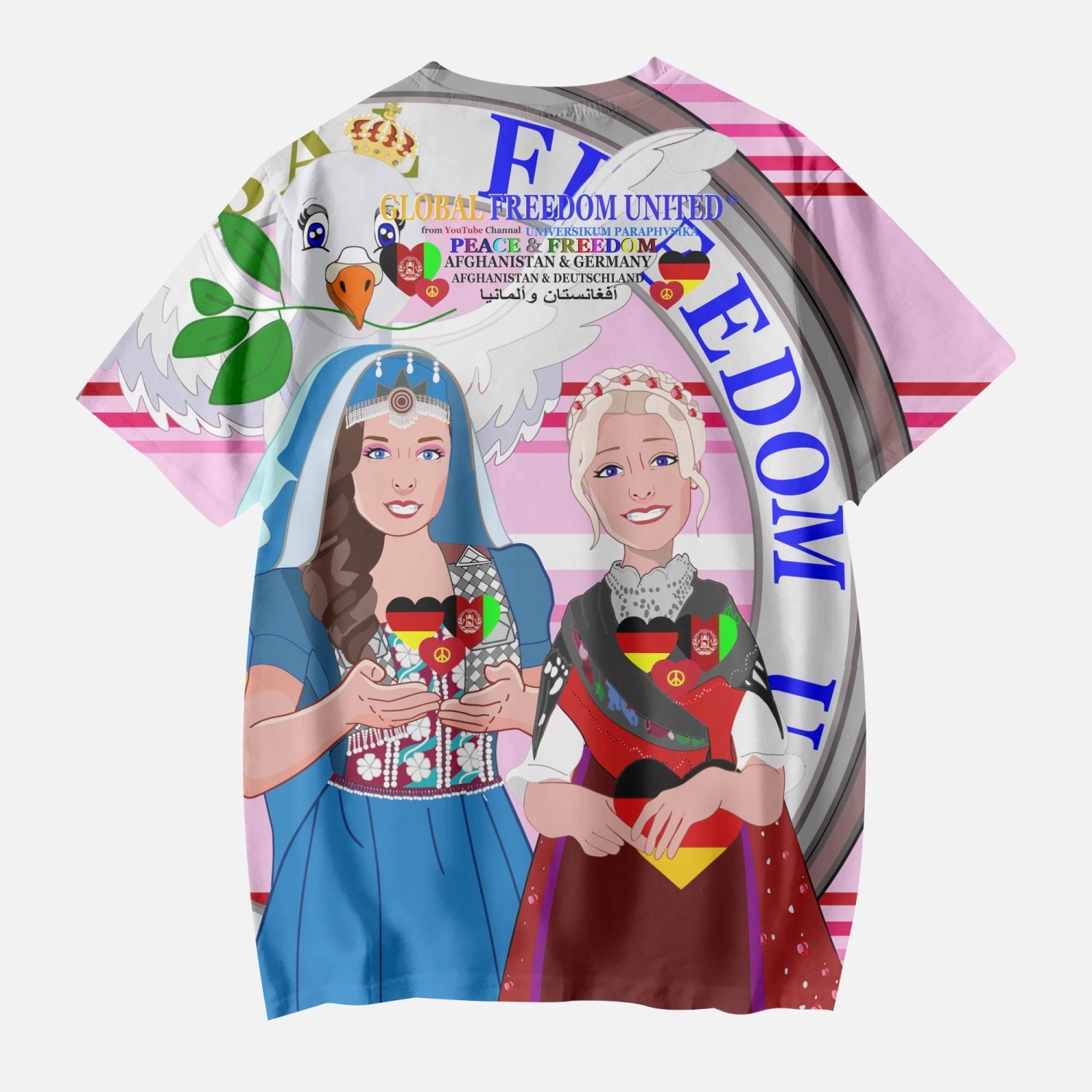 Short T-Shirts for Girls GLOBAL FREEDOM UNITED AFGHANISTAN & GERMANY V1 PINK 2