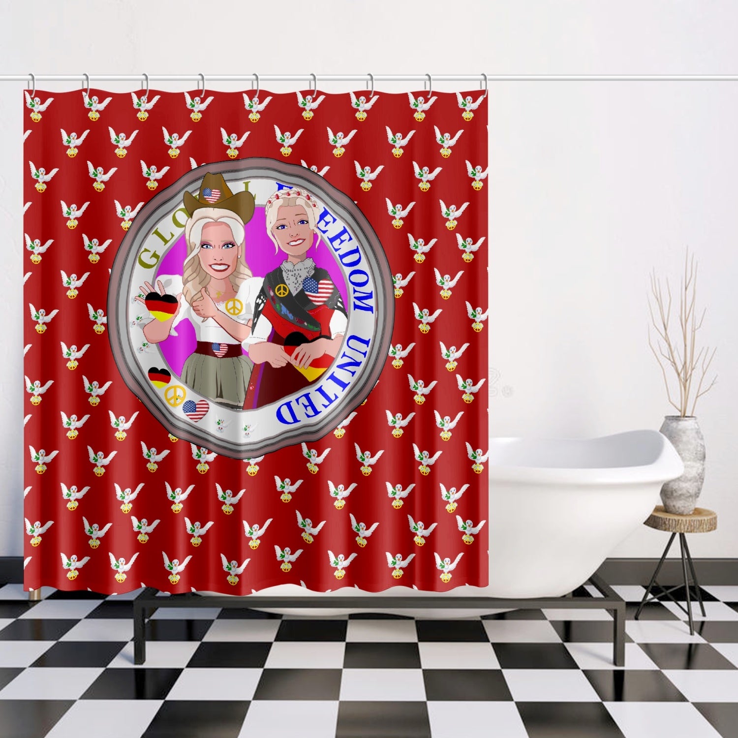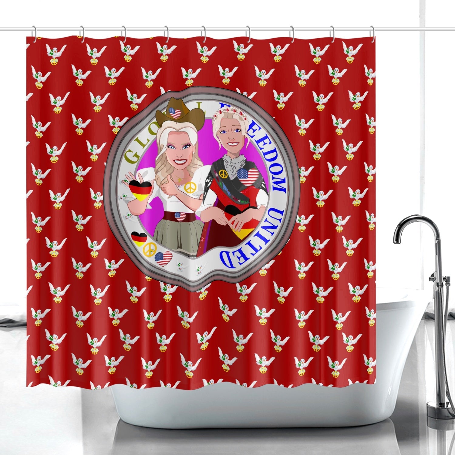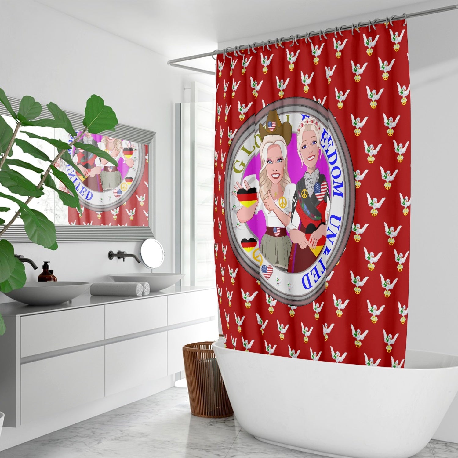 SHOWER CURTAIN GLOBAL FREEDOM UNITED WOMEN GERMANY & USA OLD PEACE RED