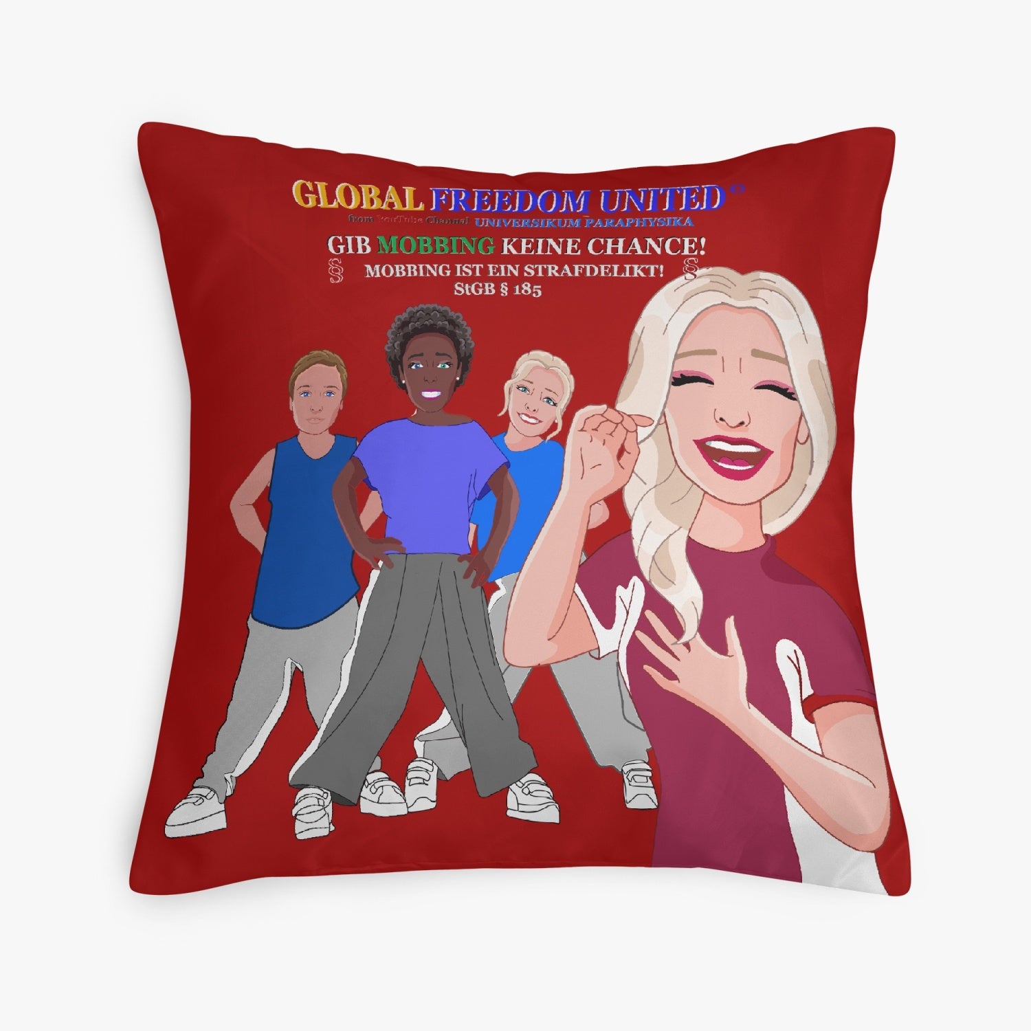 Square Pillow Cover GLOBAL FREEDOM UNITED GIB MOBBING KEINE CHANCE GERMAN RED