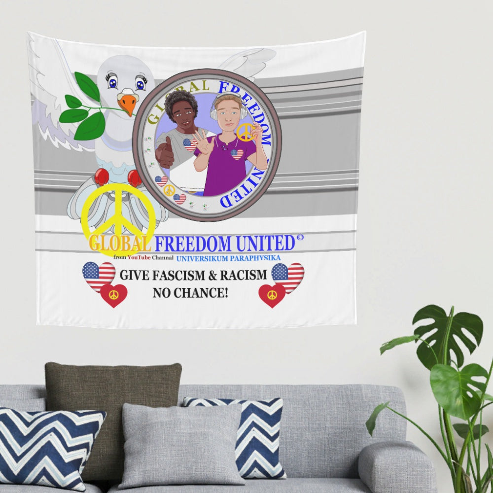 Tapestry GLOBAL FREEDOM UNITED© Men Anti Fascism & Racism USA Grey