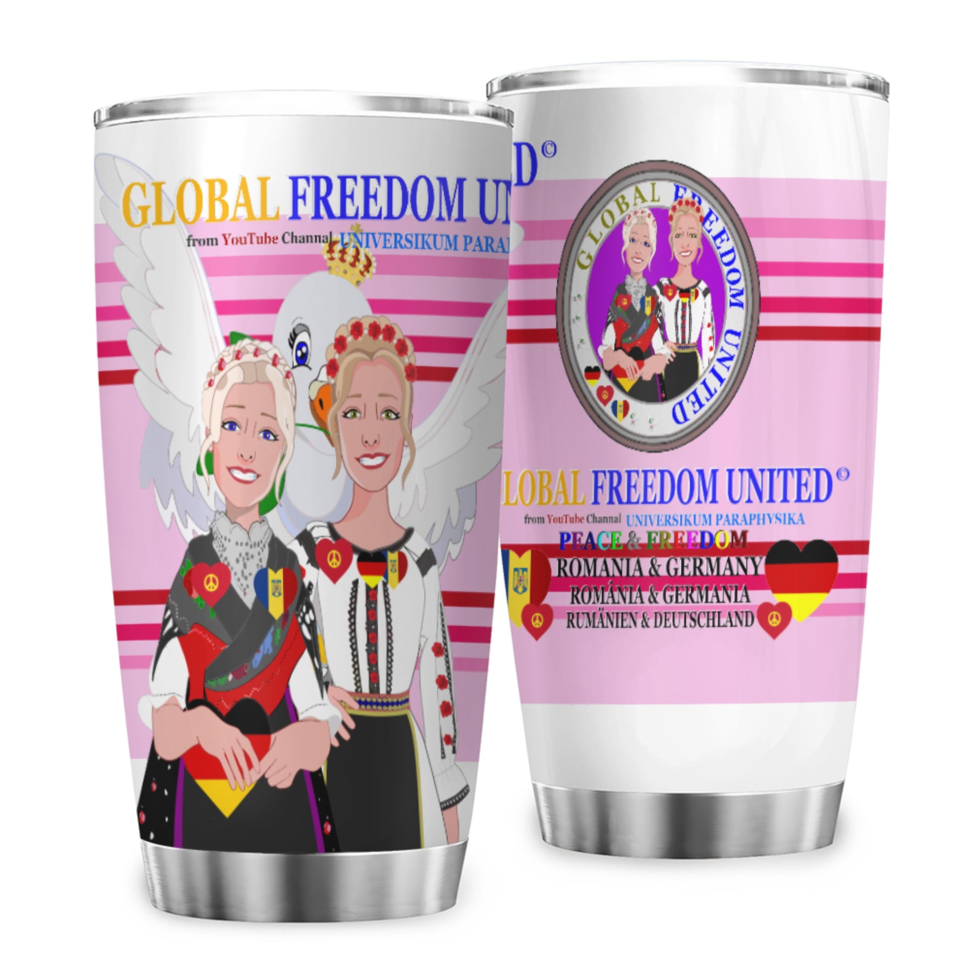 Tumbler Global Freedom United Women Romania & Germany Old Peace Pink