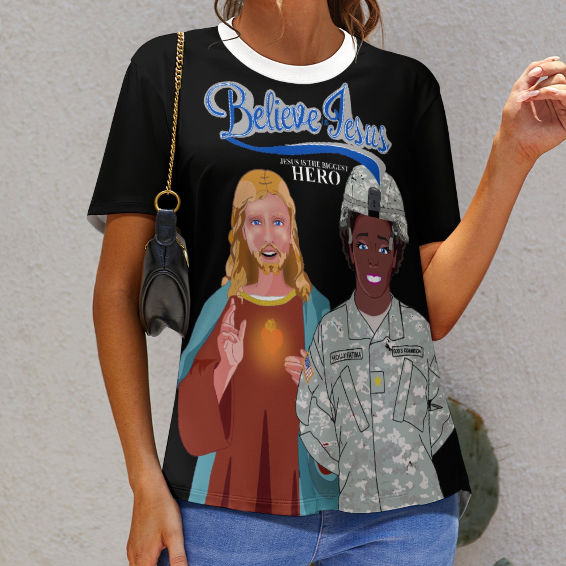 Women´s Black T-shirt Black GLOBAL FREEDOM UNITED© Jesus Christ For US American Hero Afro American Soldiers