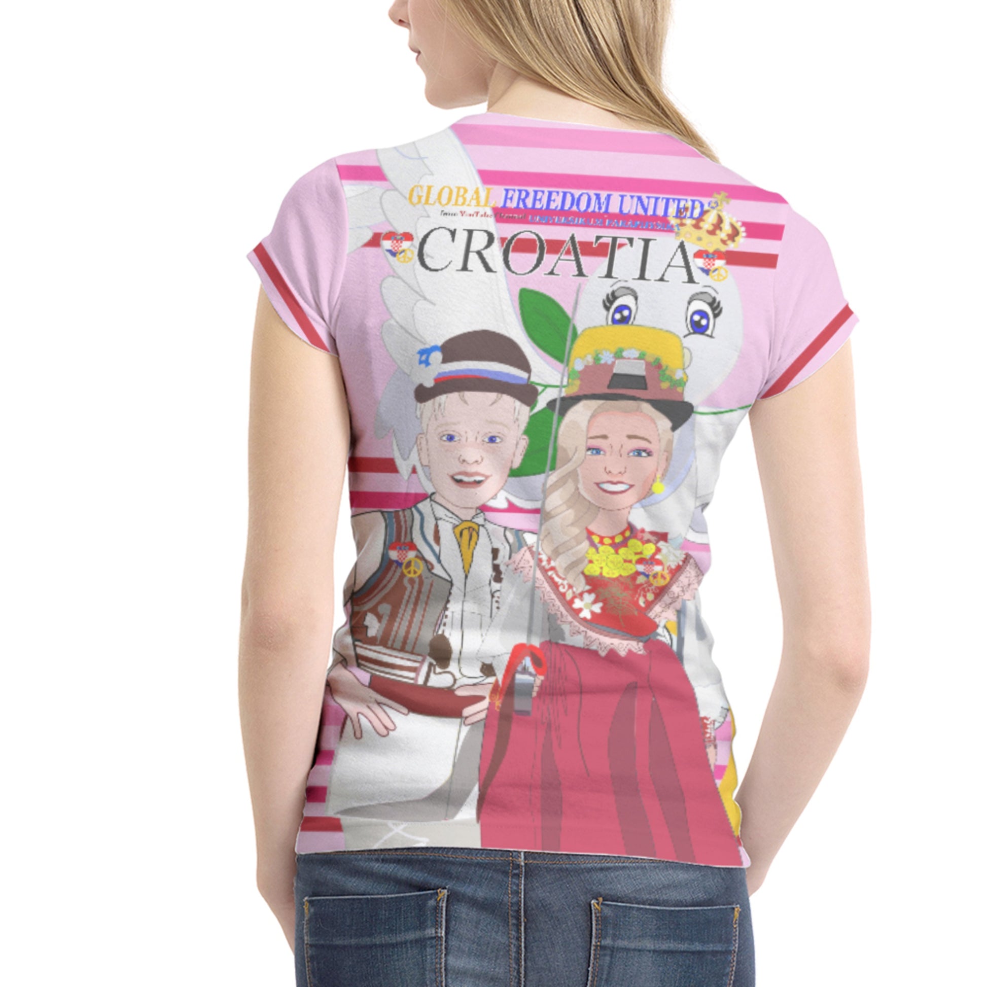 Women´s T-shirt 1 Global Freedom United Couple Edition Croatia Pink2