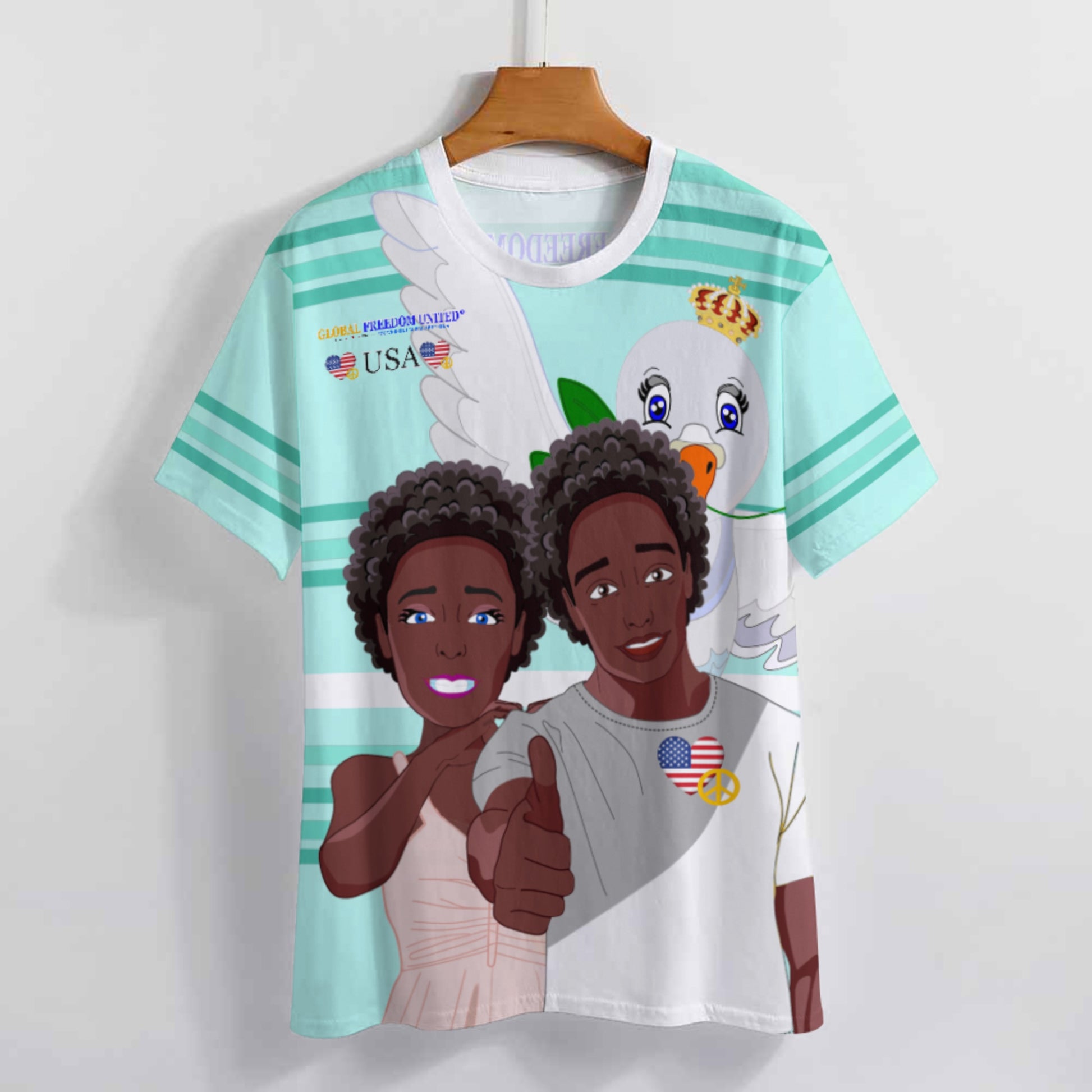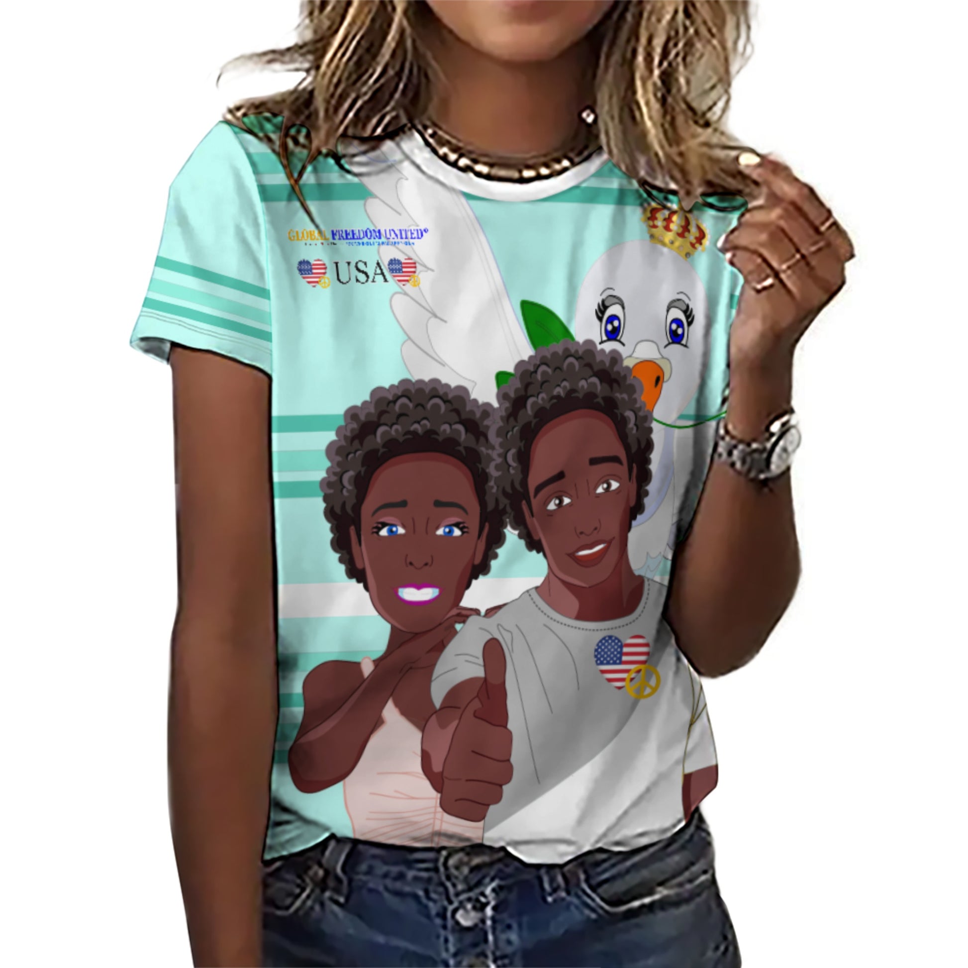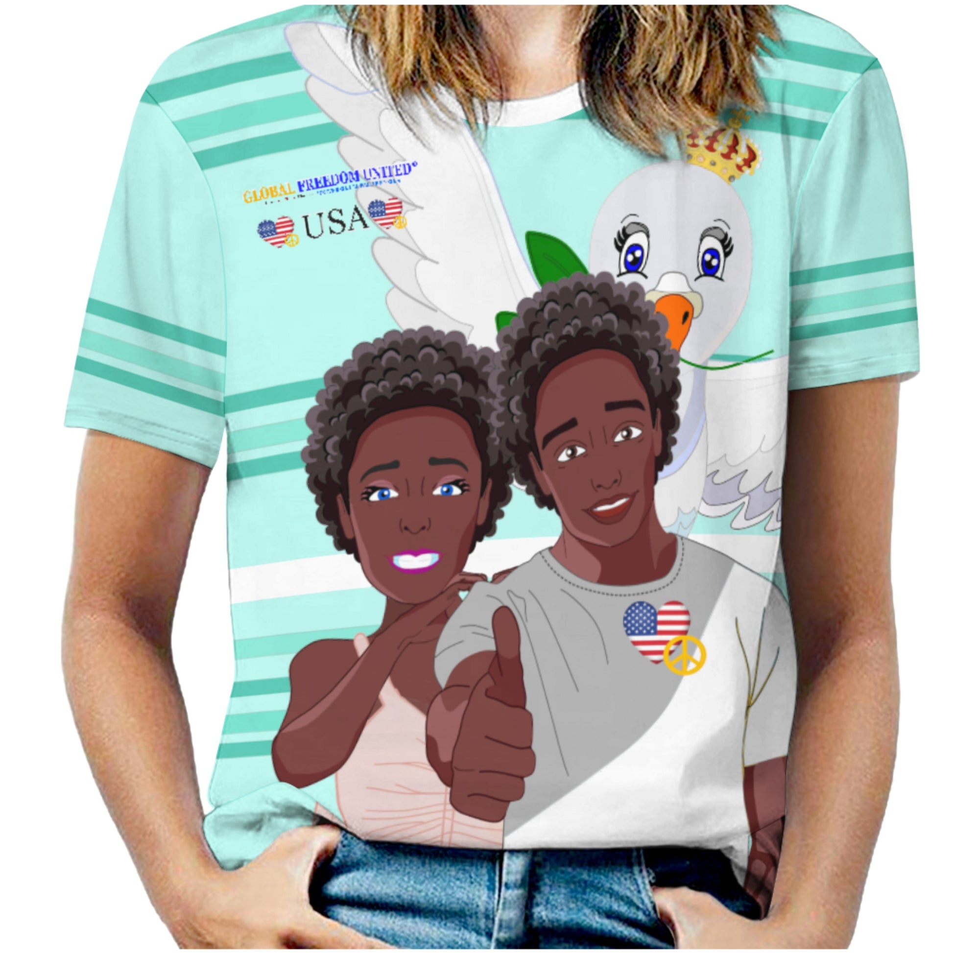Women´s T-shirt 2 GLOBAL FREEDOM UNITED© Couple USA Afro American Light Green