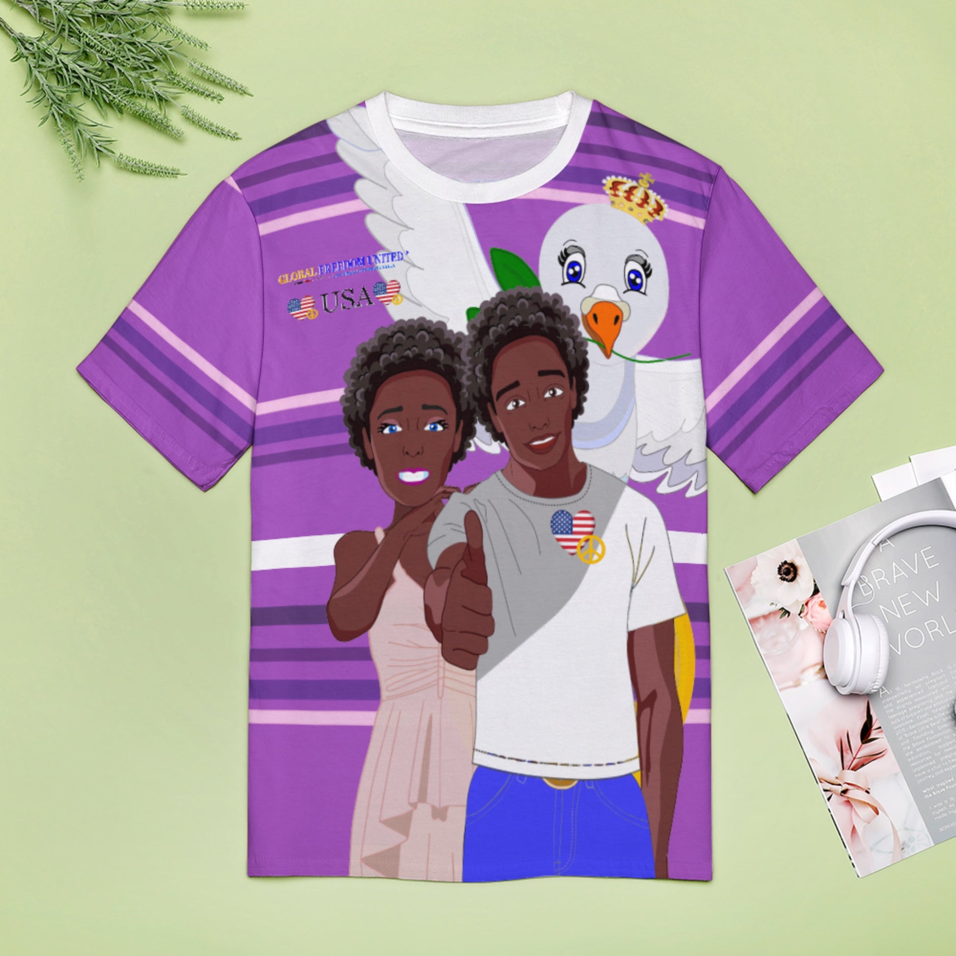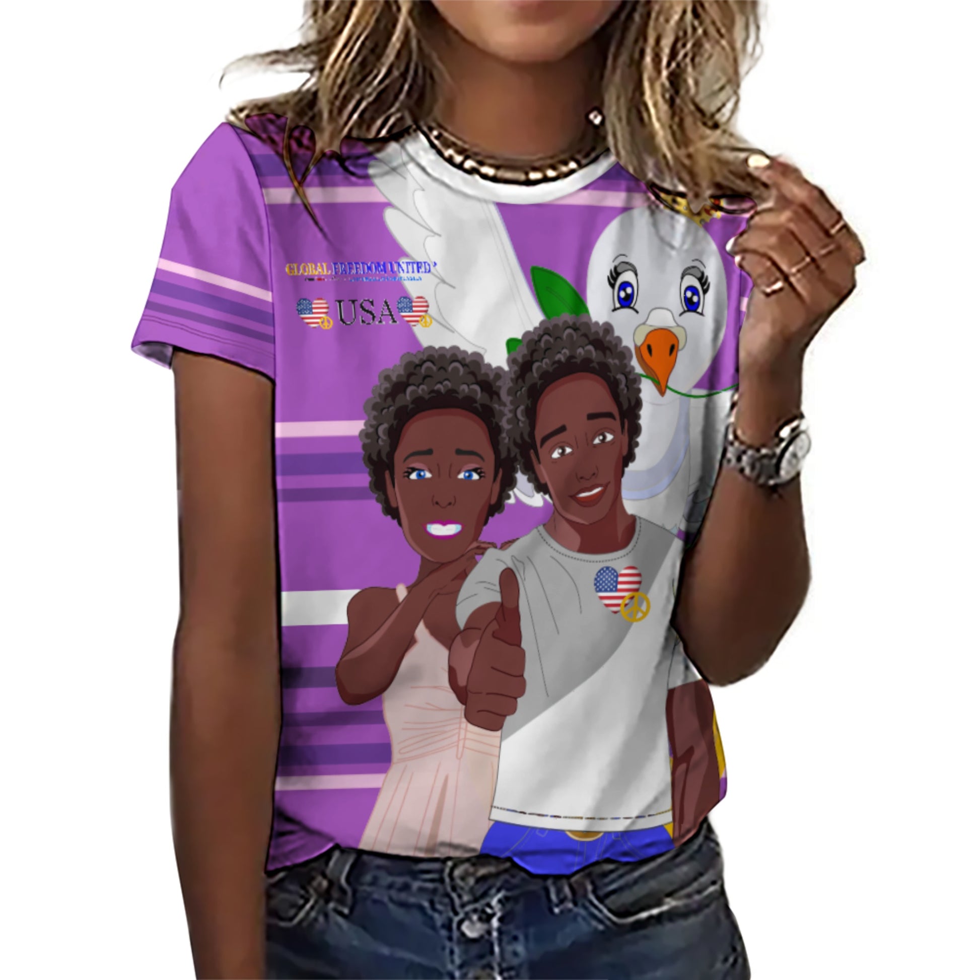 Women´s T-shirt 2 GLOBAL FREEDOM UNITED© Couple USA Afro American Lilac