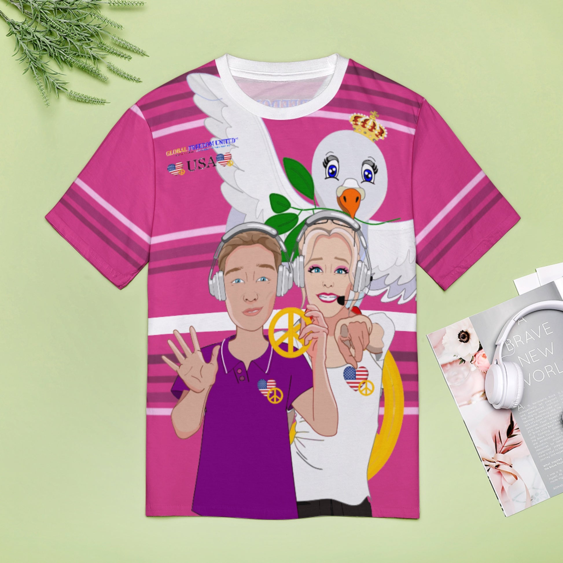 Women´s T-shirt 2 GLOBAL FREEDOM UNITED© Couple USA Wight American Pink