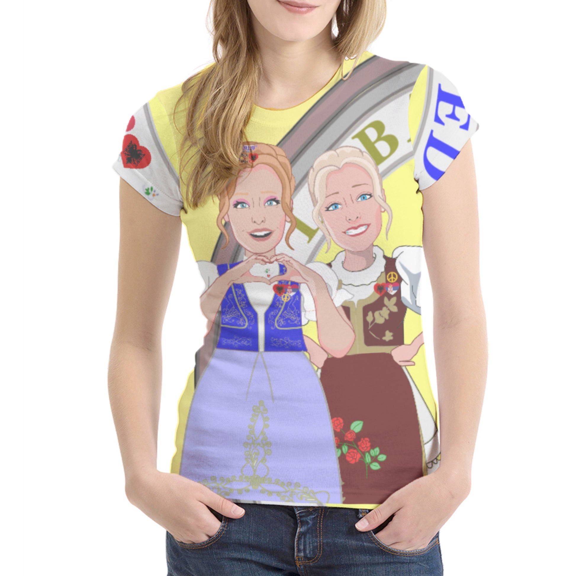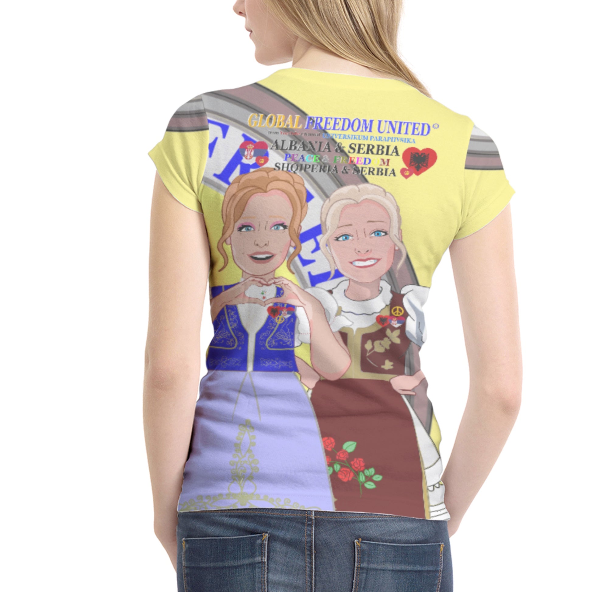 Women´s T-shirt 2 GLOBAL FREEDOM UNITED© Women Albania & Serbia Yellow