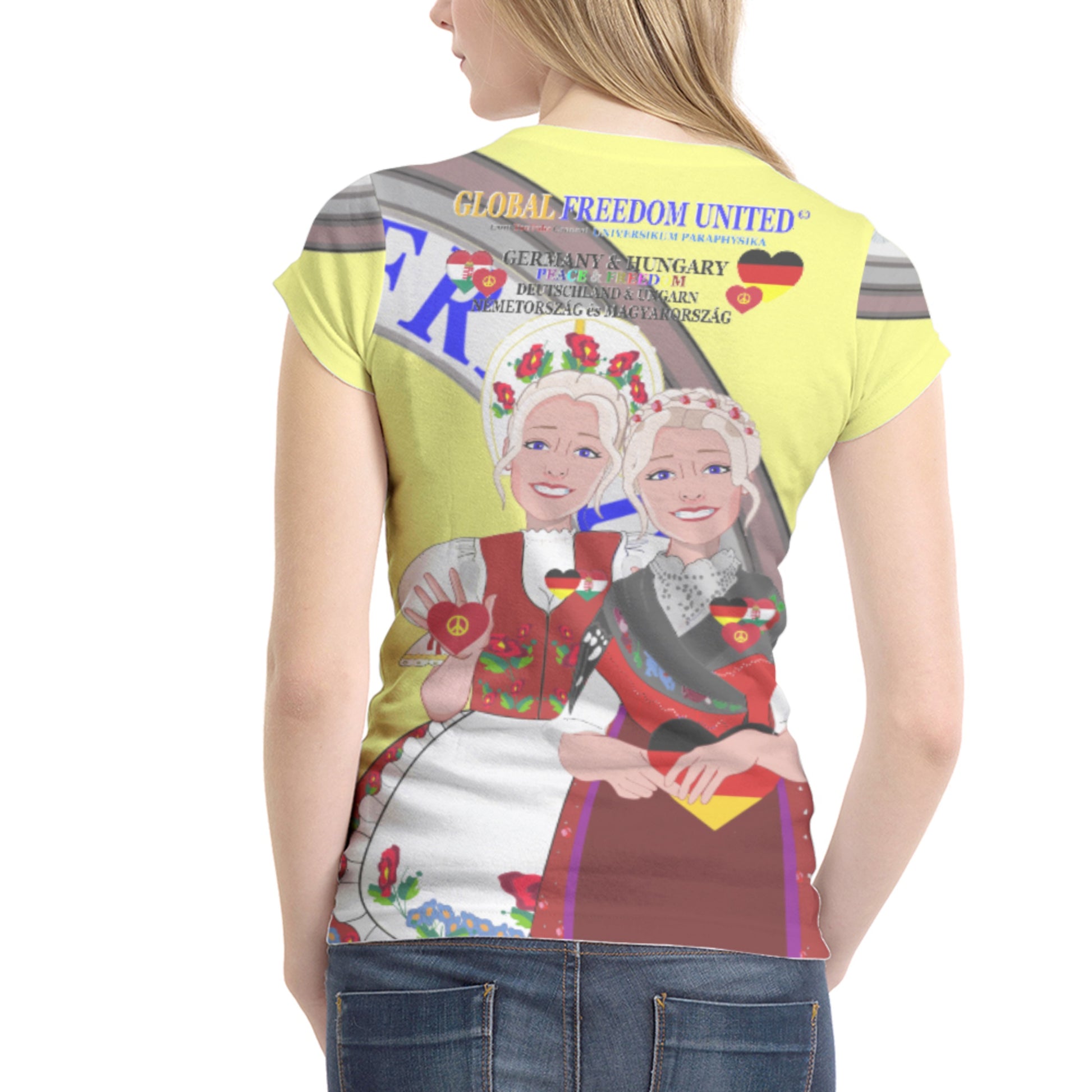 Women´s T-shirt 2 GLOBAL FREEDOM UNITED© Women Germany & Hungary Yellow
