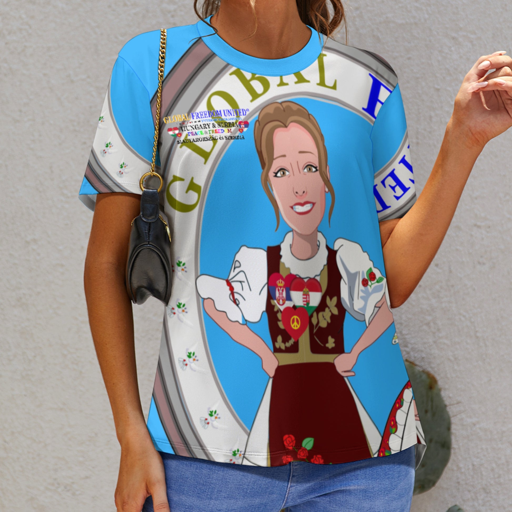 Women´s T-shirt 2 GLOBAL FREEDOM UNITED© Serbia & Hungary Blue