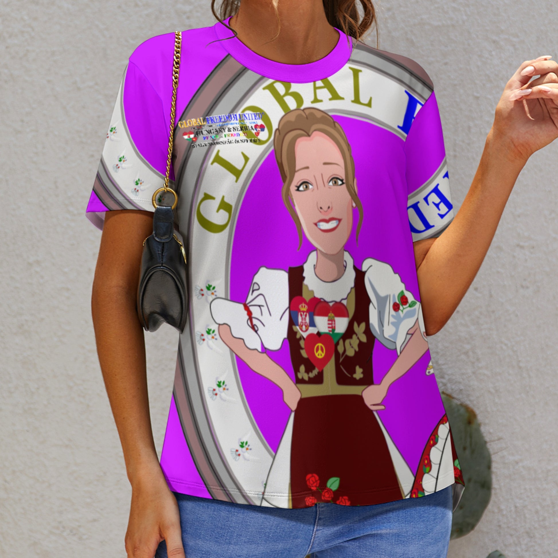 Women´s T-shirt 2 GLOBAL FREEDOM UNITED© Serbia & Hungary Old Peace Lilac