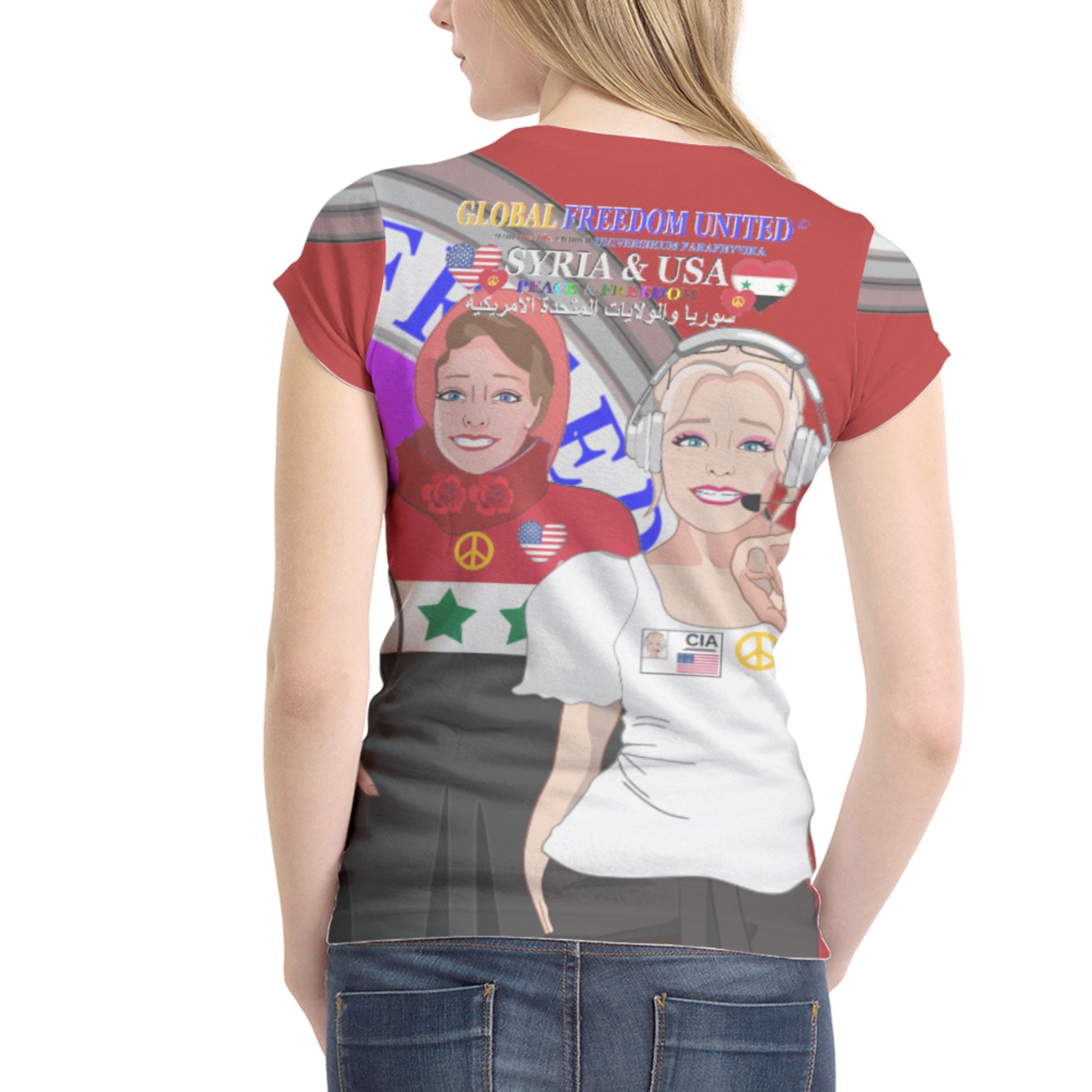 Women´s T-shirt 2 Global Freedom United Syria & Usa Old Peace Red