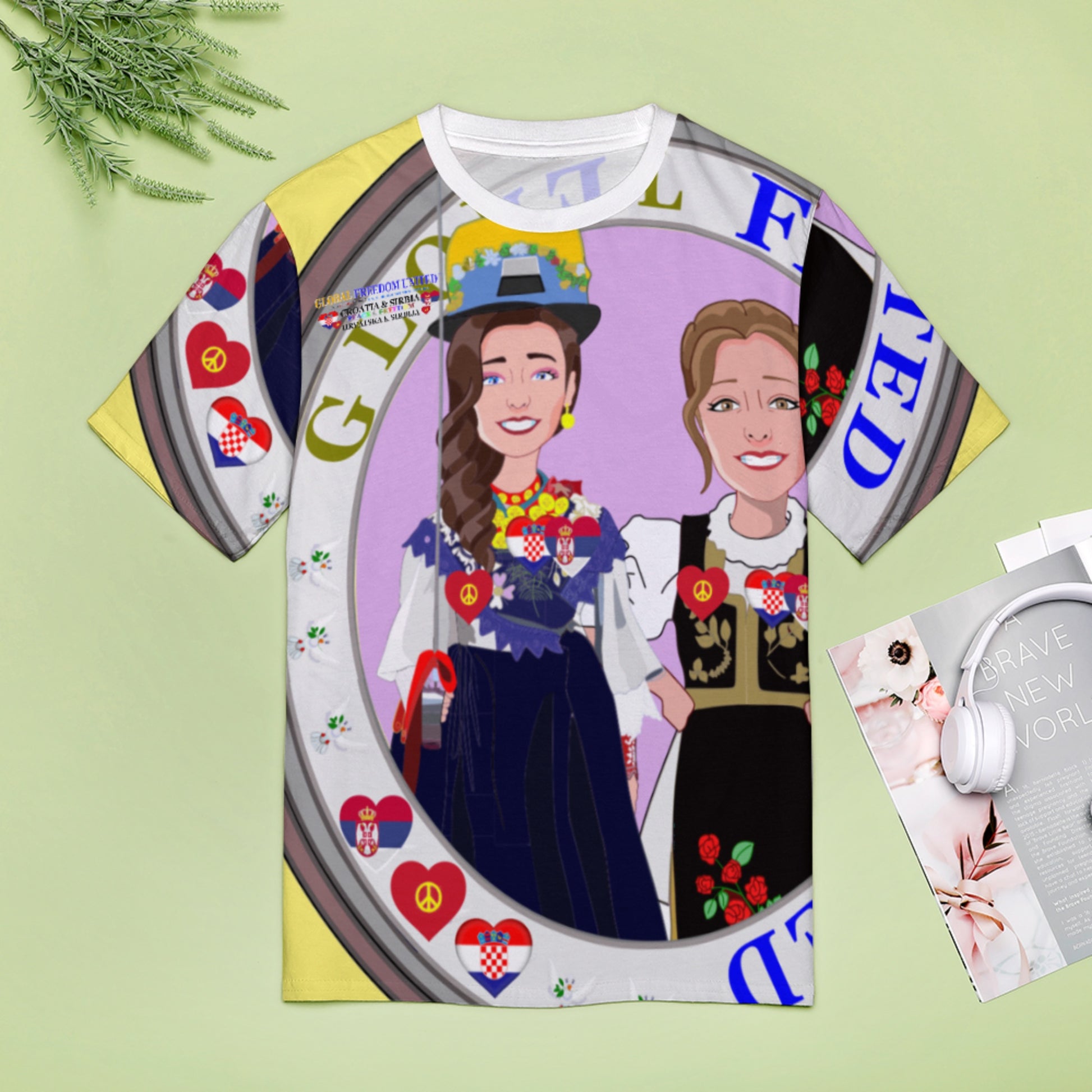 Women´s T-shirt 2 Global Freedom United Women Croatia & Serbia Old Peace Yellow