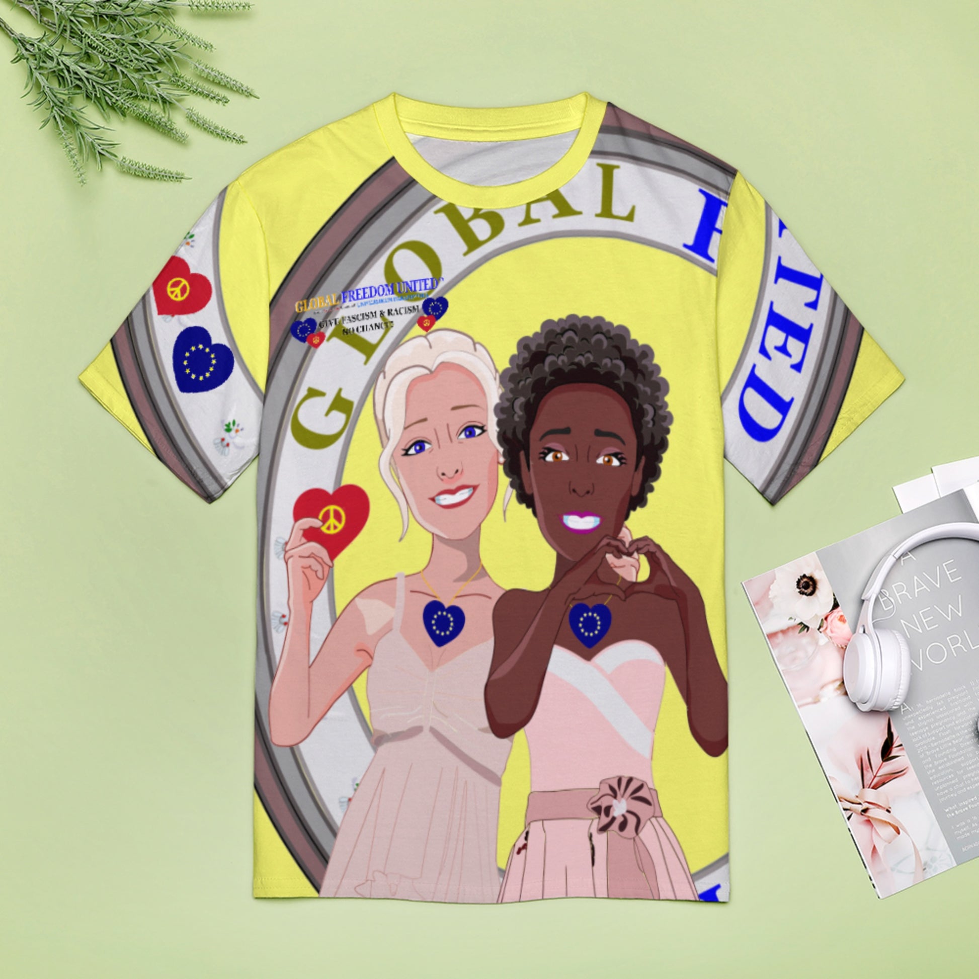Women´s T-shirt 3 GLOBAL FREEDOM UNITED© Anti Fascism & Racism EU Yellow