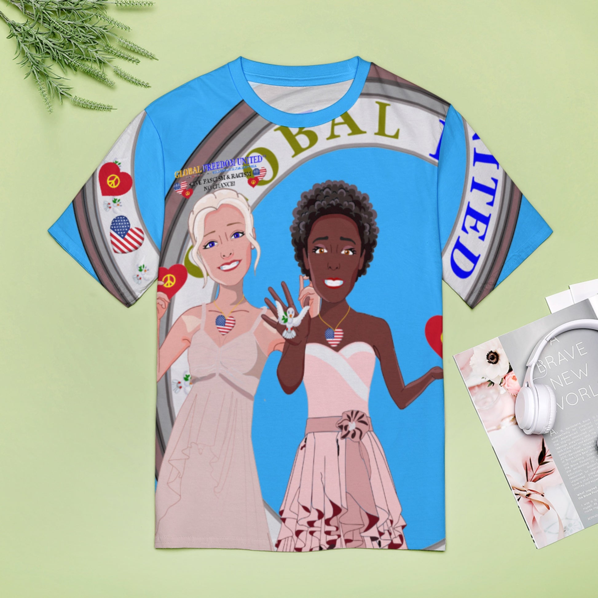 Women´s T-Shirt 3 GLOBAL FREEDOM UNITED© Women Anti Fascism & Racism USA Blue