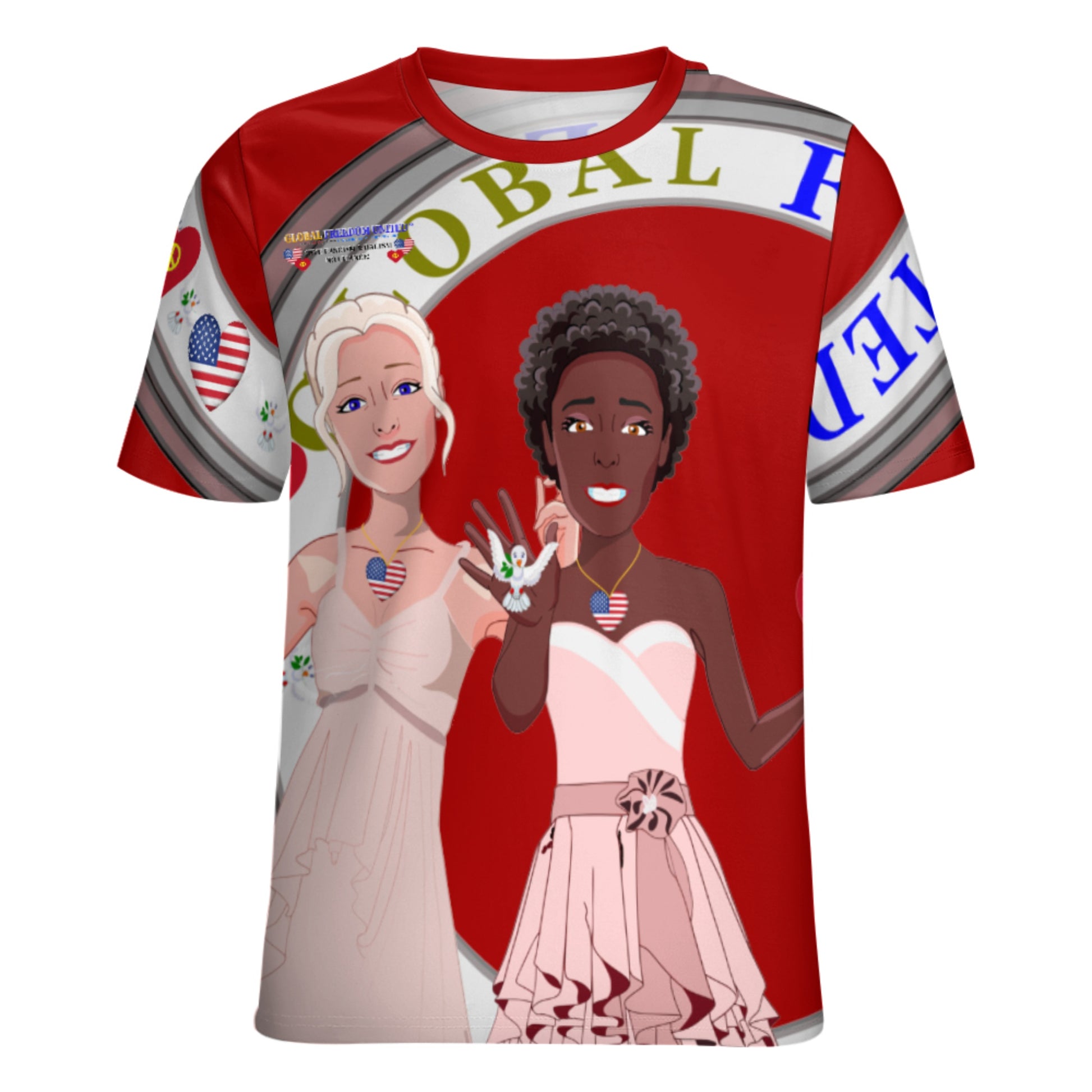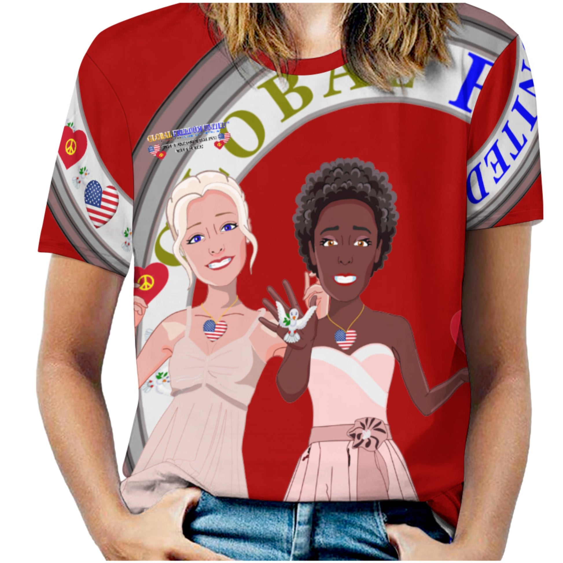 Women´s T-Shirt 3 GLOBAL FREEDOM UNITED© Women Anti Fascism & Racism USA Red