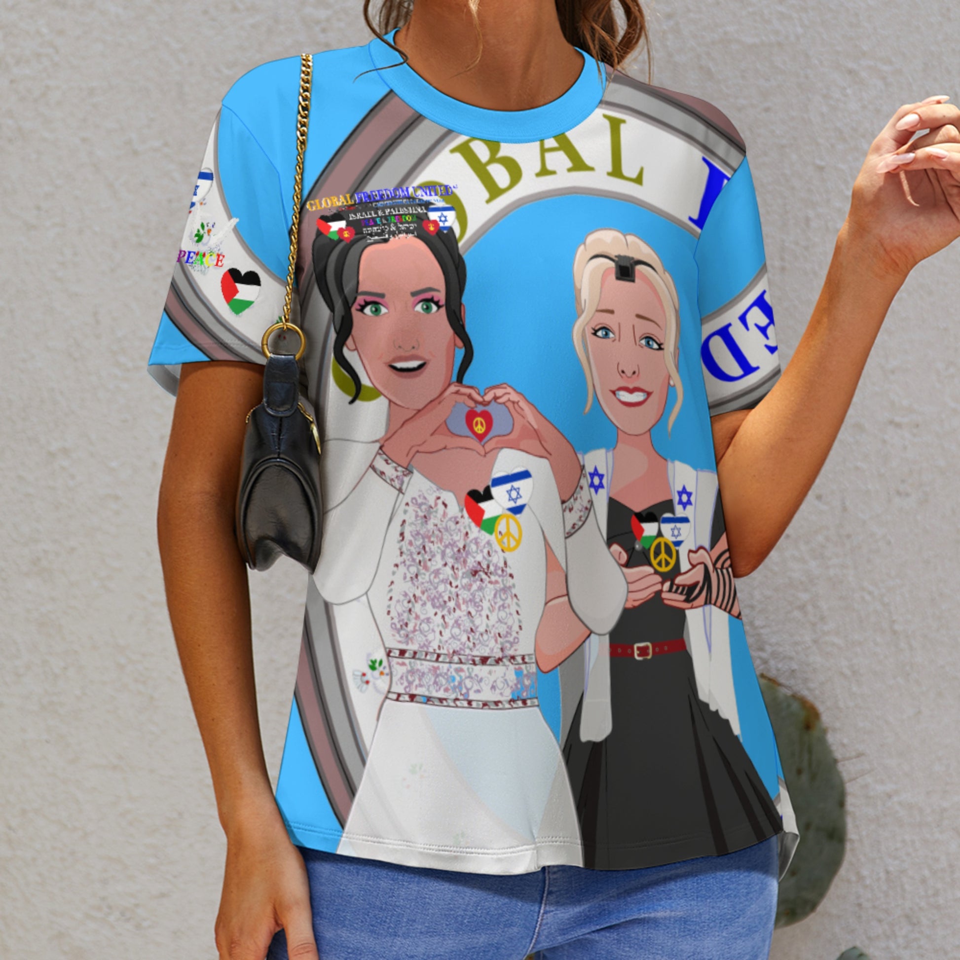 Women´s T-shirt 3 GLOBAL FREEDOM UNITED© Women Palestina & Israel Blue