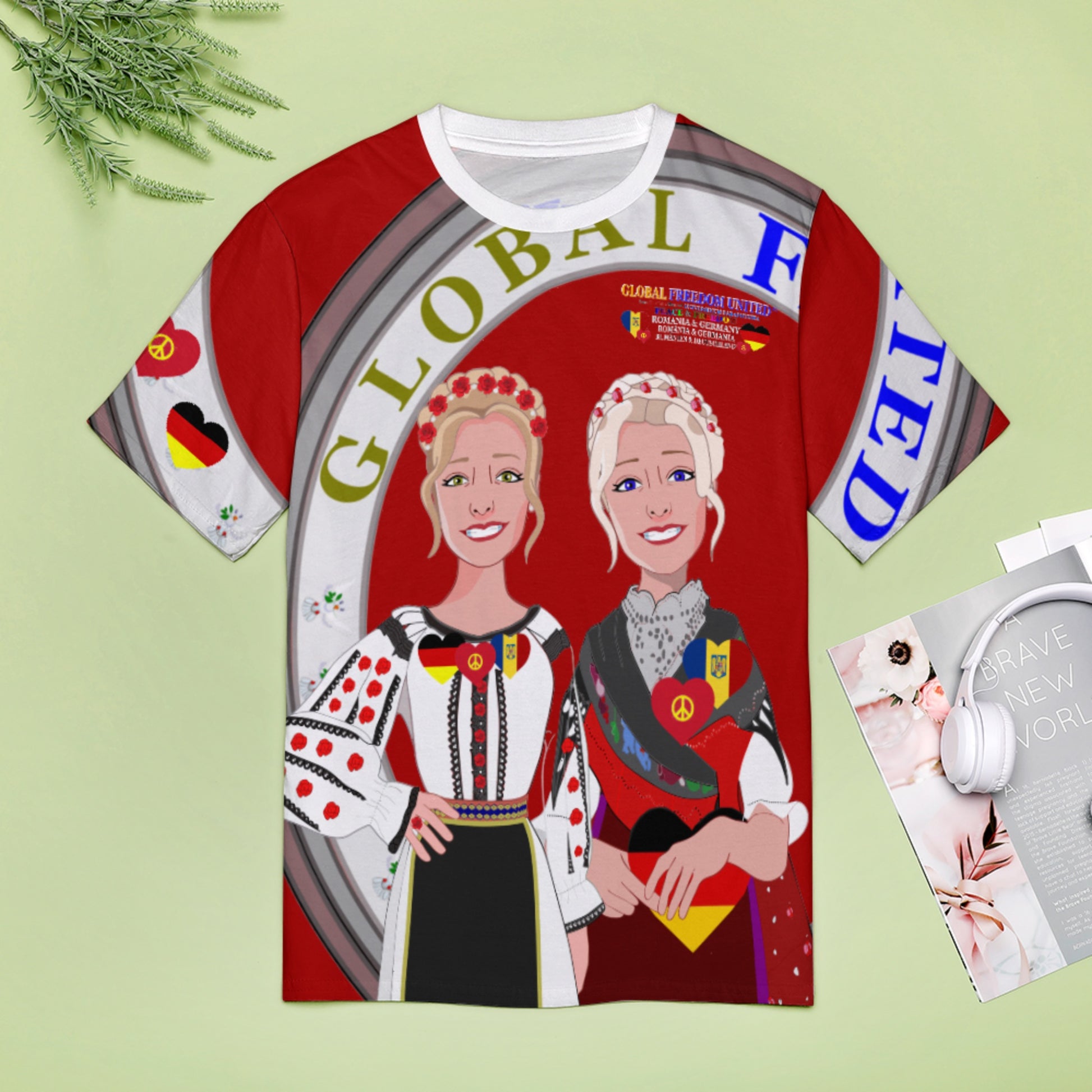 Women´s T-shirt 3 GLOBAL FREEDOM UNITED© Romania & Germany Red