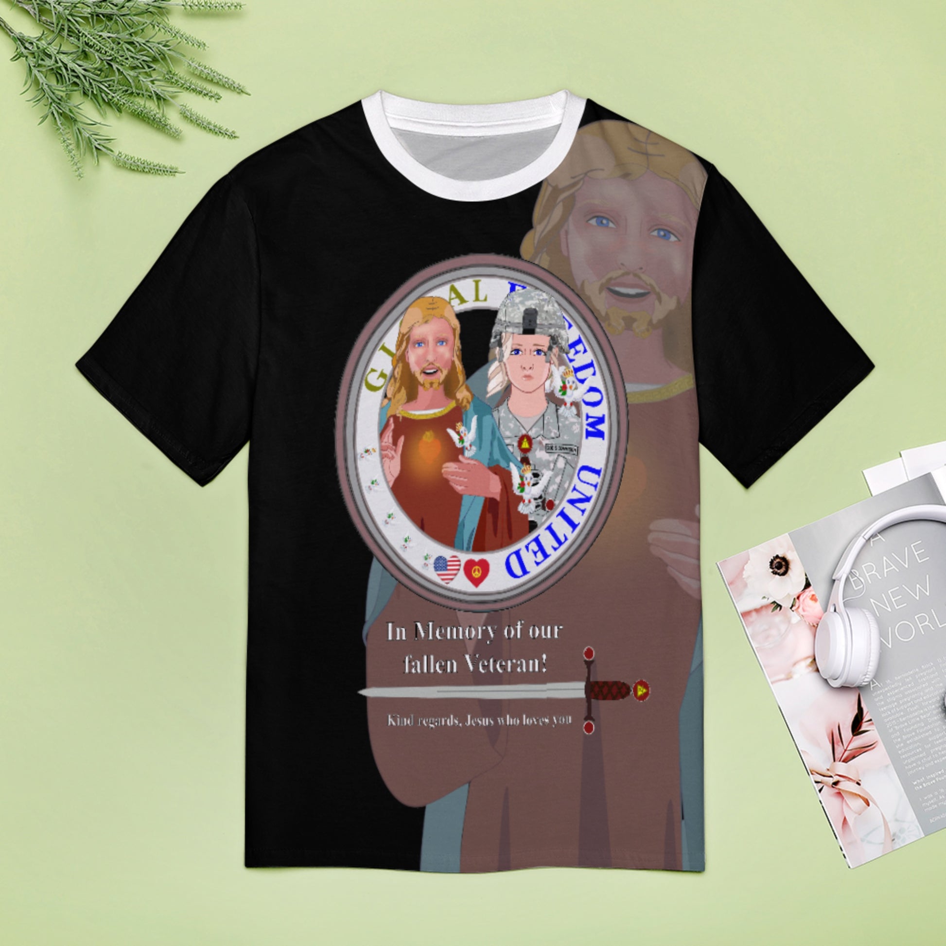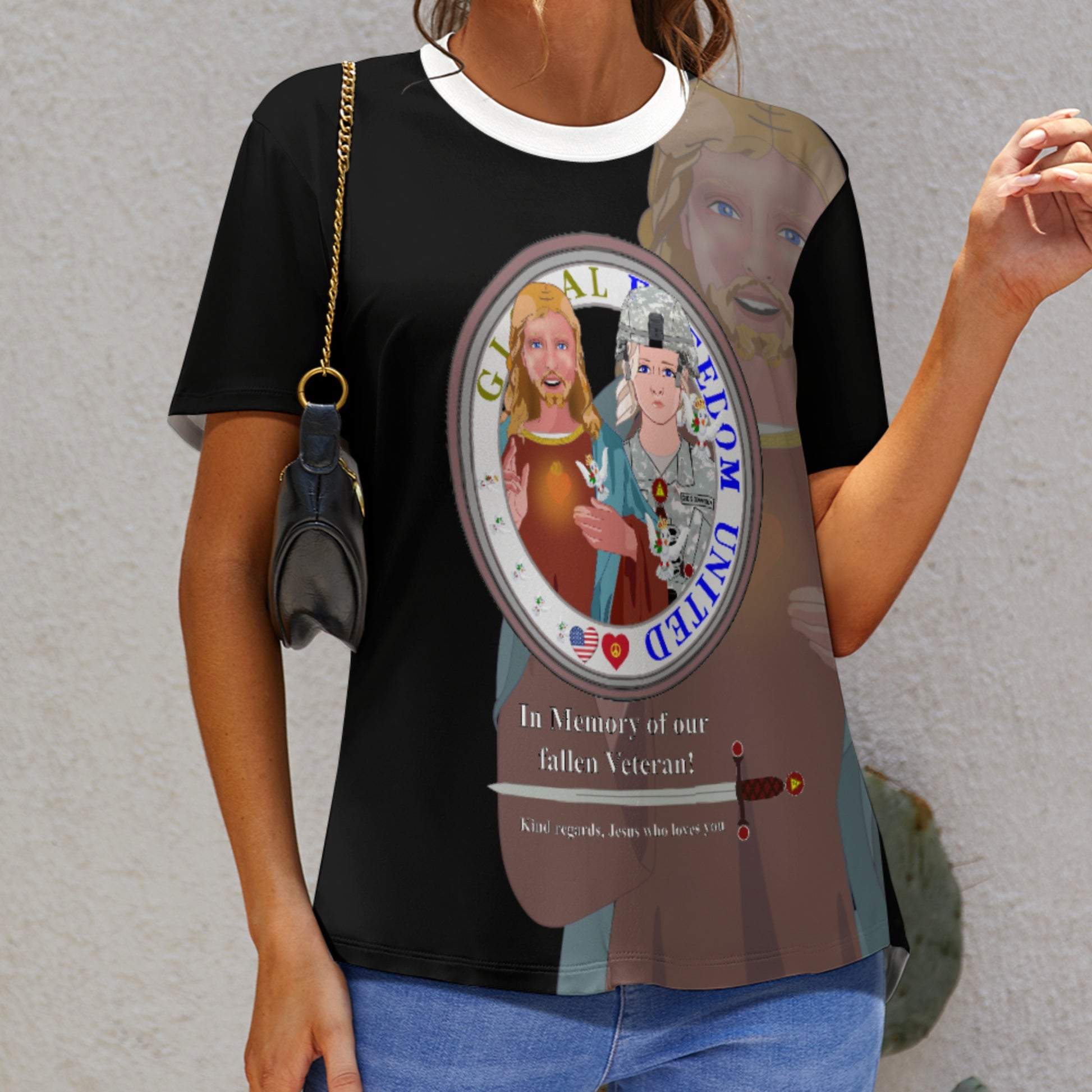 Women´s T-Shirt Black GLOBAL FREEDOM UNITED© Jesus Christ For Fallen Veteran US Afro American Soldiers V1