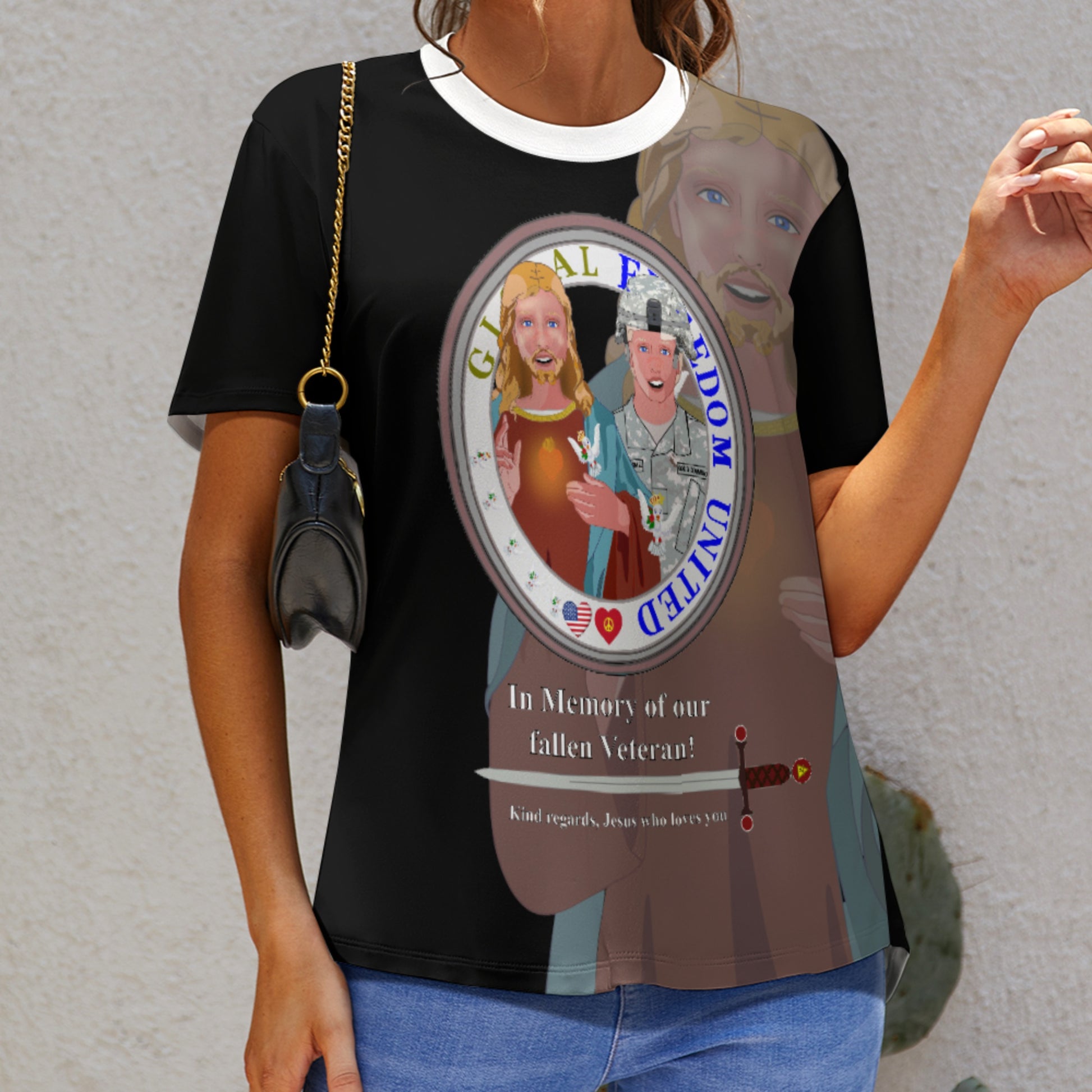Women´s T-shirt Black GLOBAL FREEDOM UNITED© Jesus Christ For Fallen Veteran US Afro American Soldiers V4