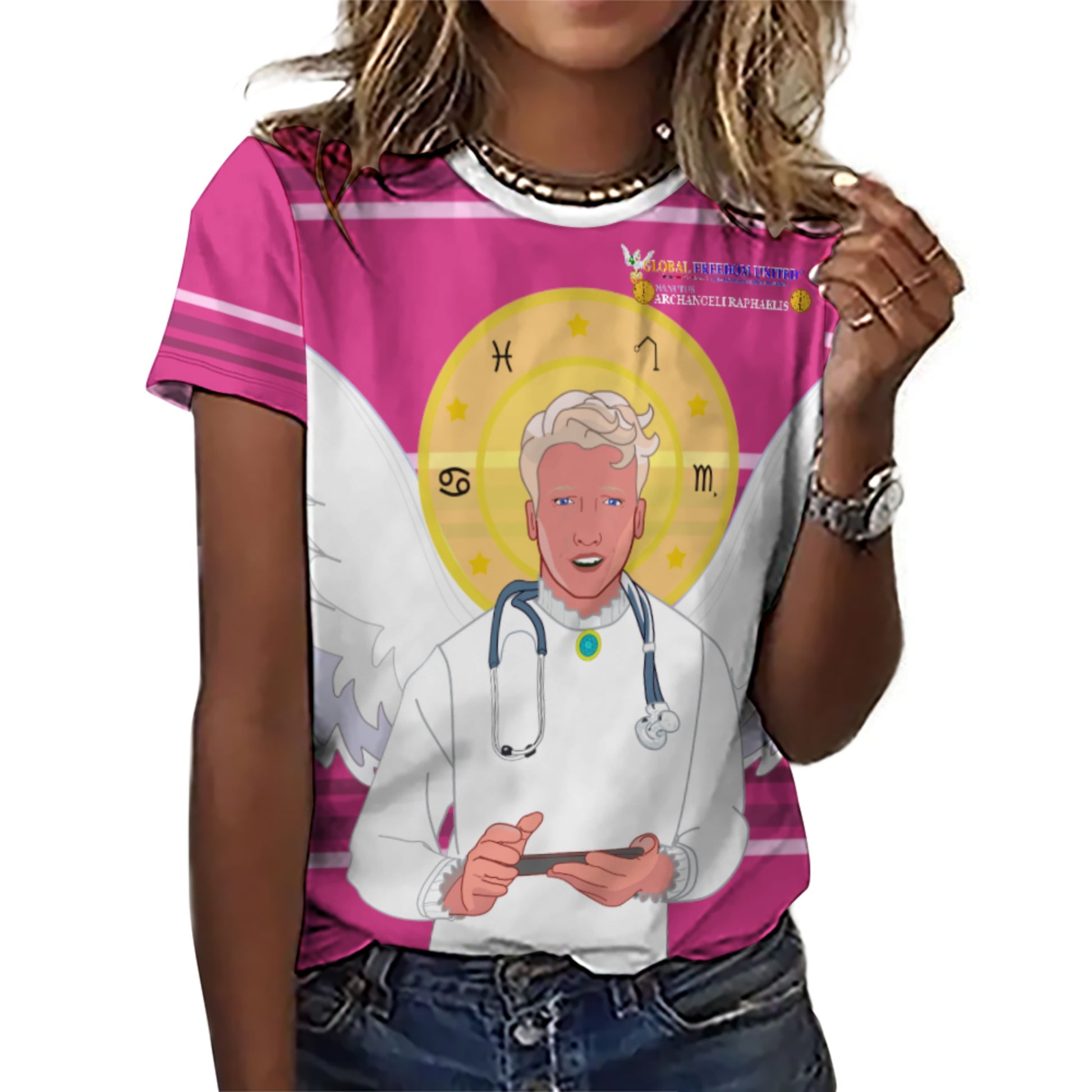 Women´s T-shirt GLOBAL FREEDOM UNITED© Archangel Rafael Old Latin Pink2