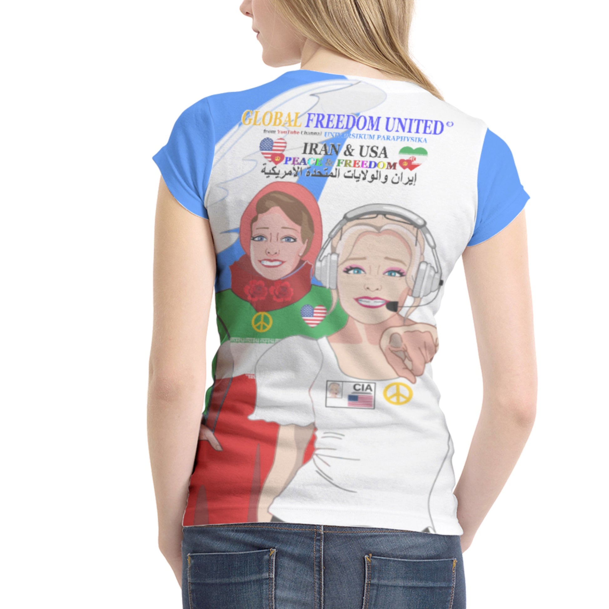 Women´s T-shirt 1 GLOBAL FREEDOM UNITED© Women Iran & USA Blue