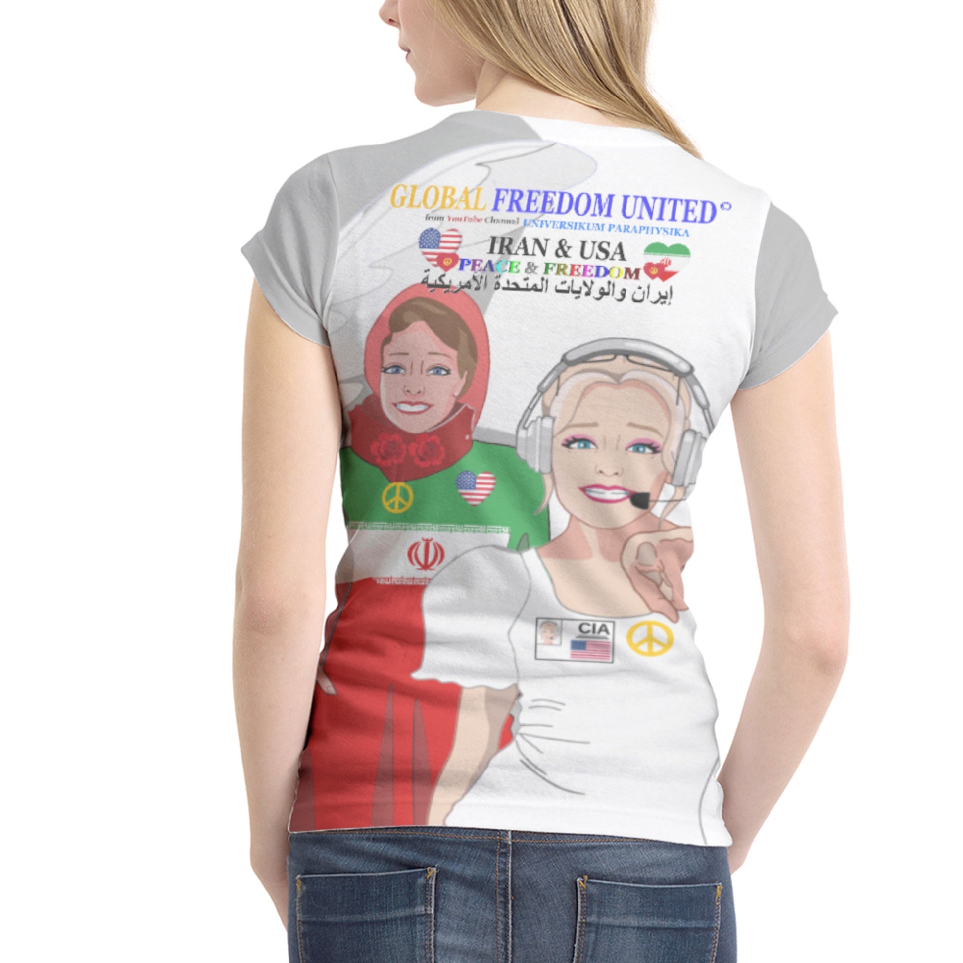 Women´s T-shirt 1 GLOBAL FREEDOM UNITED© Women Iran & USA Grey