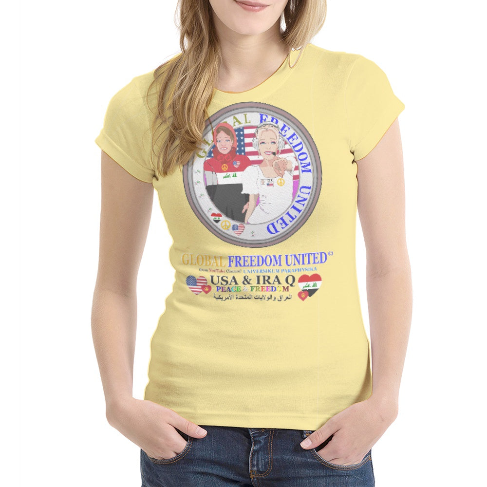 Women´s T-shirt GLOBAL FREEDOM UNITED© Women Iraq & USA Yellow