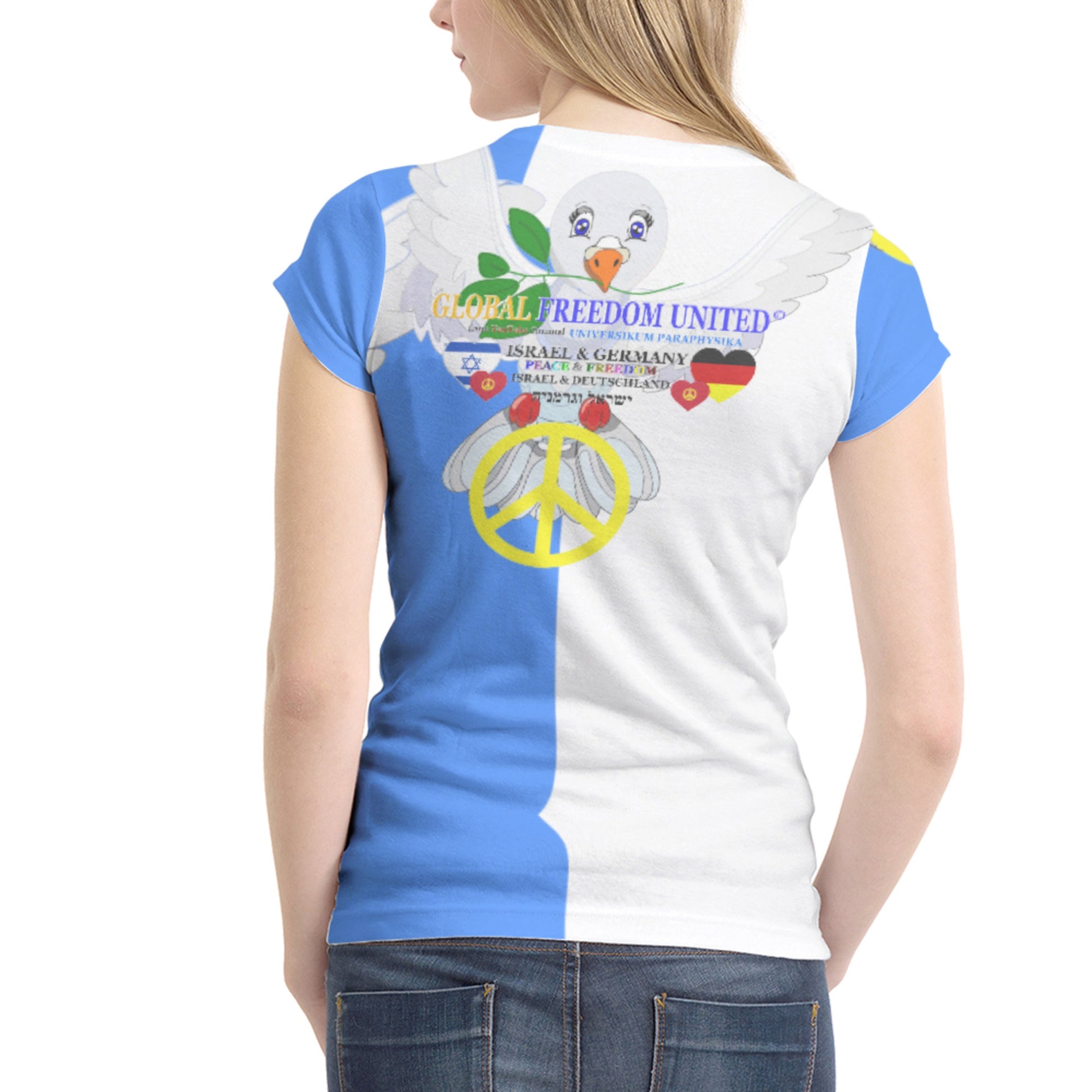 Women´s T-shirt GLOBAL FREEDOM UNITED© Israel & Germany Old Peace Version 1 Blue