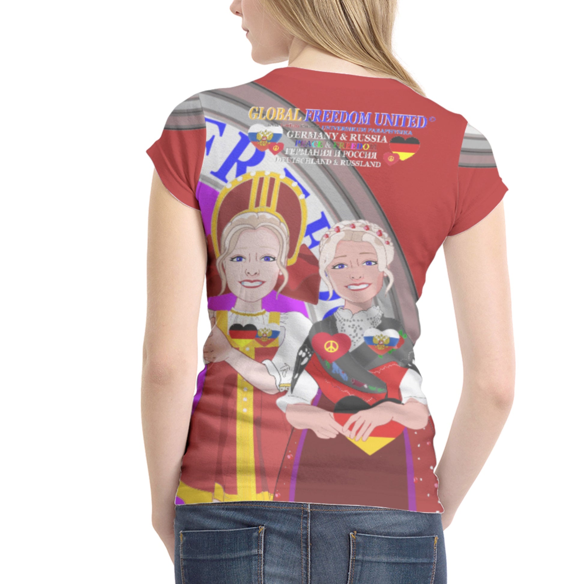 Women´s T-shirt 2 GLOBAL FREEDOM UNITED© Women RUSSIA & GERMANY Red