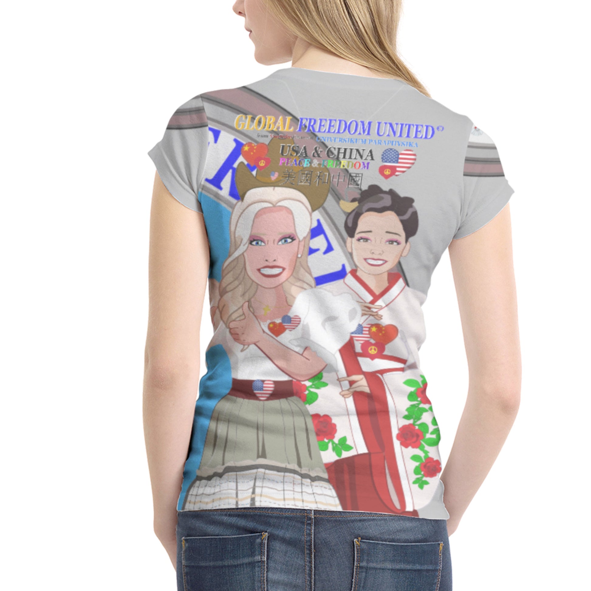 Women´s T-shirt 2 GLOBAL FREEDOM UNITED© Women USA & China Grey
