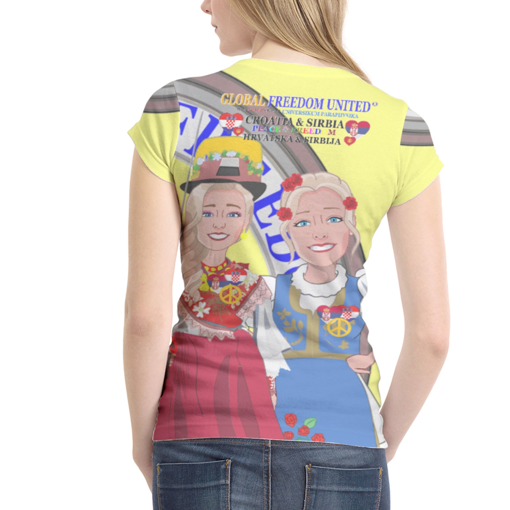 Women´s T-shirt GLOBAL FREEDOM UNITED© Women Croatia & Serbia V2 Yellow