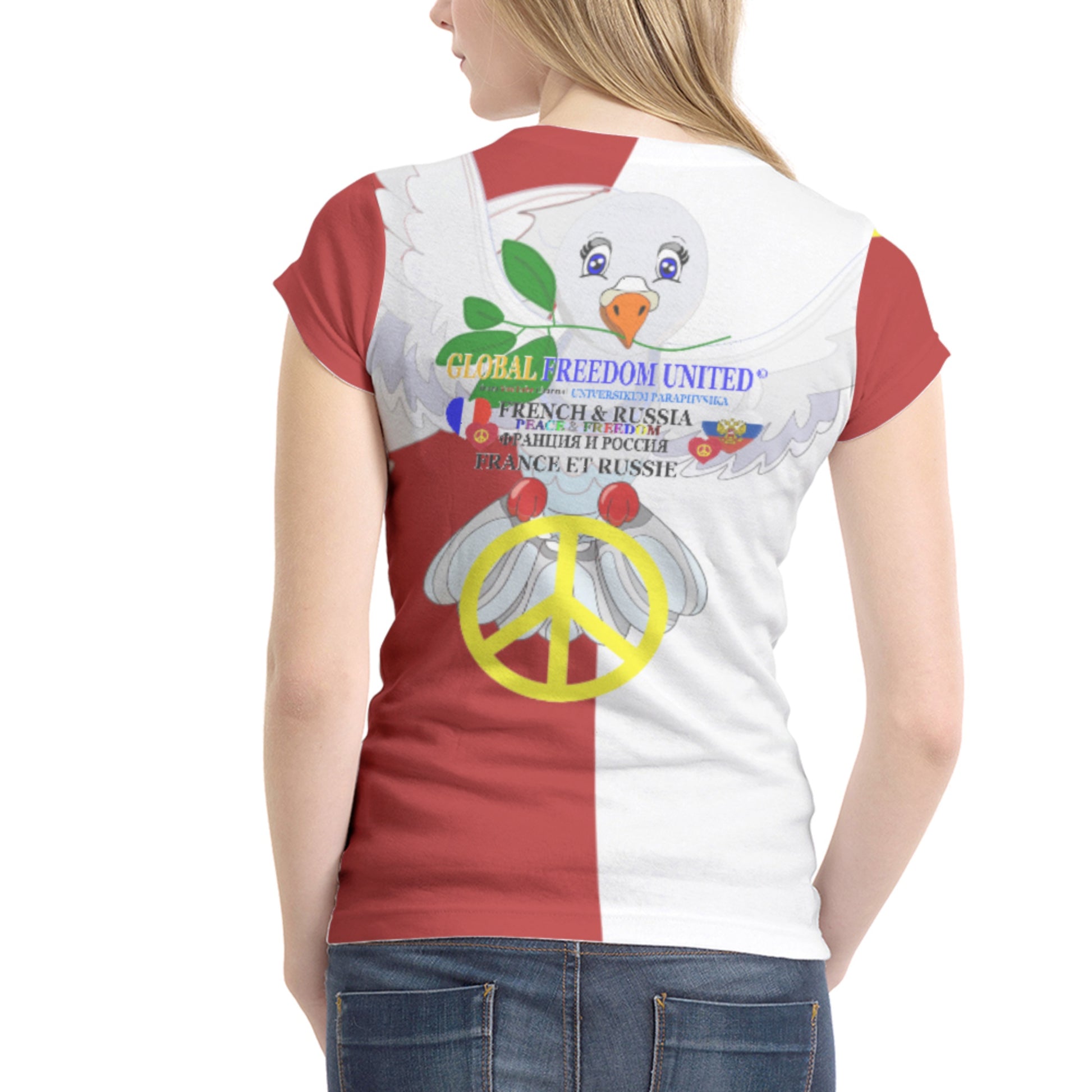 Womens T-shirt 1 GLOBAL FREEDOM UNITED© Women French & Russia Red