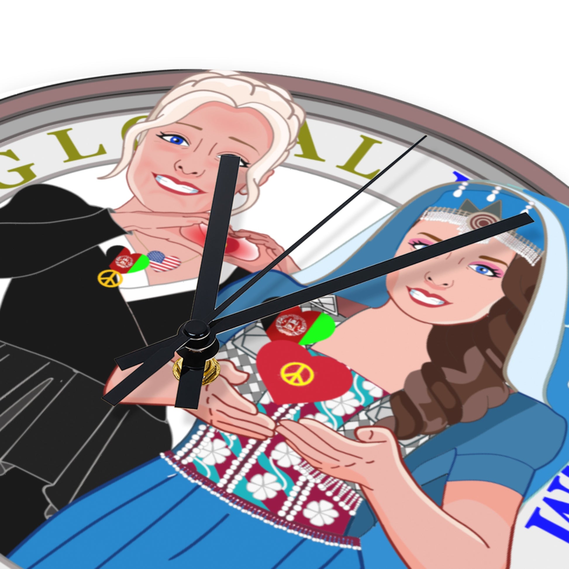 Wooden Wall Clock Without Scale GLOBAL FREEDOM UNITED© Women Afghanistan & USA