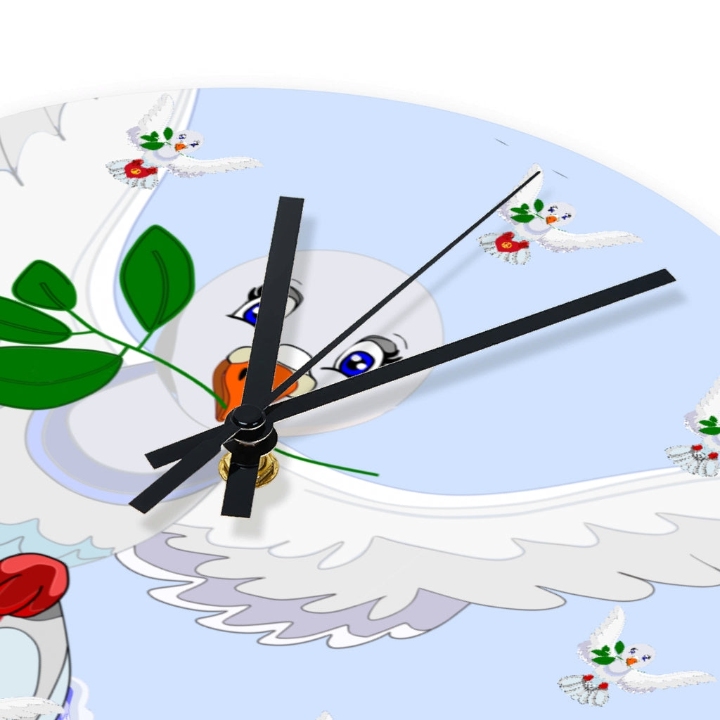 Wooden Wall Clock Without Scale GLOBAL FREEDOM UNITED© Dove Of Peace Roses Blue